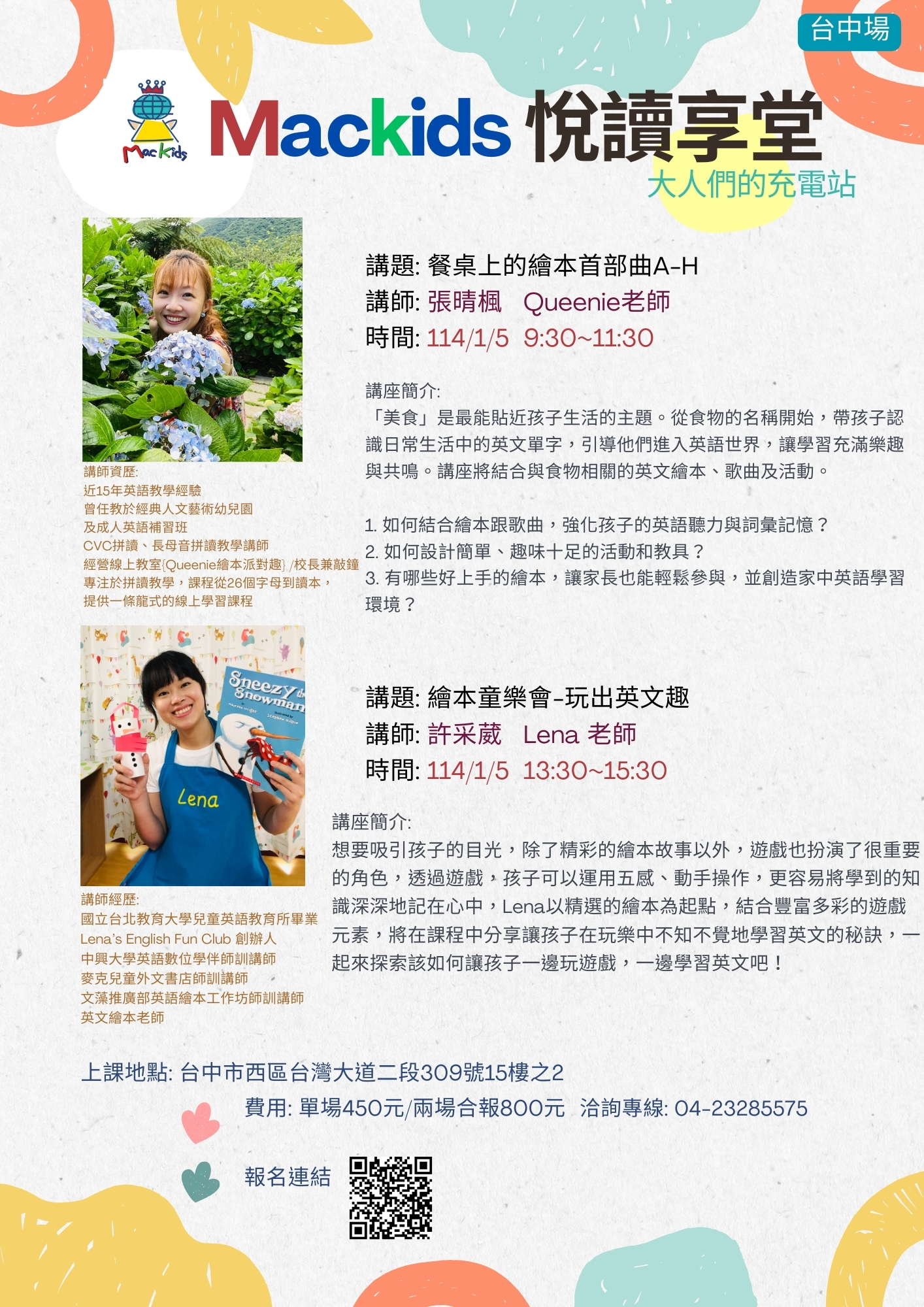 2025 【5月 RHYMING AROUND THE ALPAHBET 】一日種子培訓