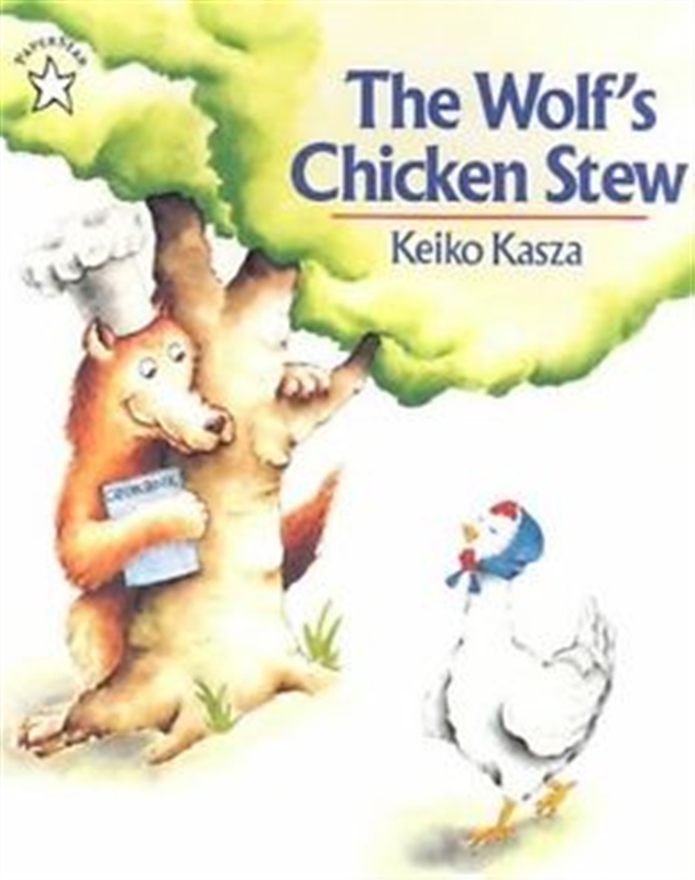總是費盡心思在準備餐點的Wolf,這天他興沖沖的在路上尋找獵物,發現了可口美味的雞,於是他延路跟蹤著,發現這隻雞太瘦了,恩~這樣吃起來一定不夠鮮嫩多汁,於是,廚藝精湛的Wolf每天都製作各式各樣的點心給雞,一會兒是鬆餅、一會兒是蛋糕的想餵飽她。幾天後Wolf覺得時機成熟了,該是享受美味的時候,沒想到! 雞除了認識他,迎接並開門打招呼,還叫來了家裡成群的小雞們,並要孩子們喊著 "Thank you , Uncle Wolf~" 這下害Wolf不知該哭還是該笑了.....