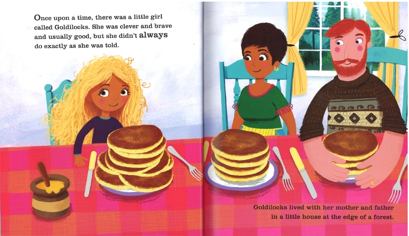 When Goldilocks gets lost in the woods, she finds herself at a cosy little cottage. She is delighted to find three bowls of porridge on the table, three chairs in the living room and some very bouncy beds in the bedroom. But little does Goldilocks know, this cottage belongs to three bears, and they're on their way back home . . .