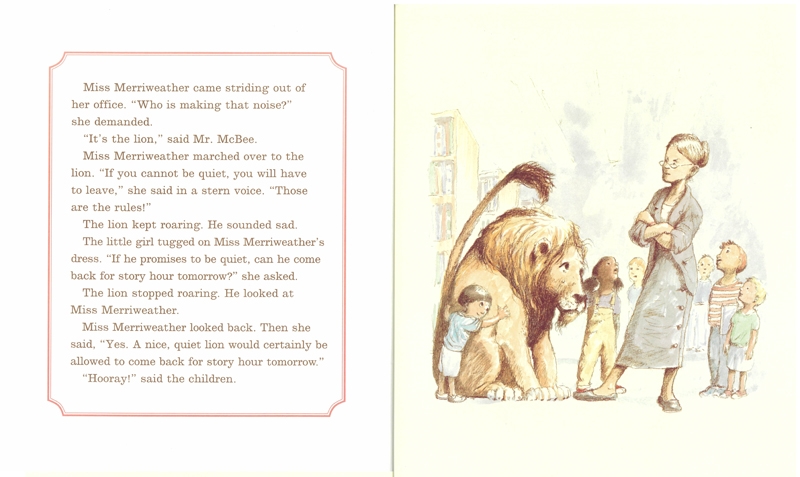 Miss Merriweather, the head librarian, is very particular about rules in the library. No running allowed. And you must be quiet. But when a lion comes to the library one day, no one is sure what to do. There aren't any rules about lions in the library. And, as it turns out, this lion seems very well suited to library visiting. His big feet are quiet on the library floor. He makes a comfy backrest for the children at story hour. And he never roars in the library, at least not anymore. But when something terrible happens, the lion quickly comes to the rescue in the only way he knows how. Michelle Knudsen's disarming story, illustrated by the matchless Kevin Hawkes in an expressive timeless style, will win over even the most ardent of rule keepers.