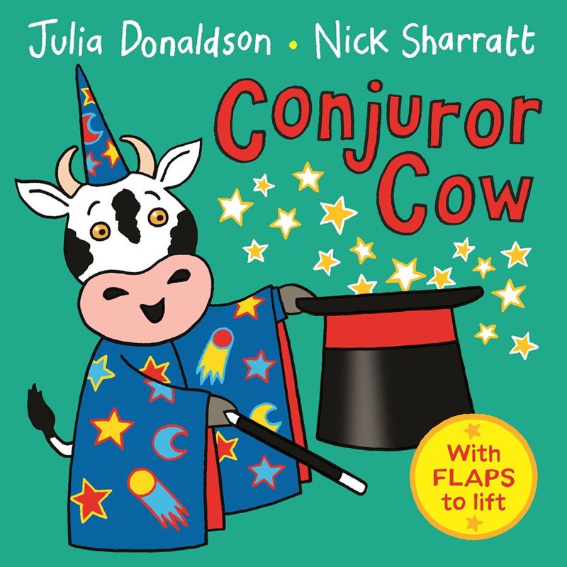 Conjuror Cow is a brilliantly funny lift-the-flap board book by Julia Donaldson, author of The Gruffalo, and Nick Sharratt, illustrator of You Choose.