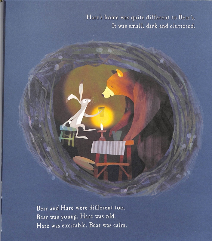 When Bear moves into a new home in the woods, his home feels empty, and Bear is a little bit lonely. With a RAT-A-TAT-TAT! on his neighbour’s door, Bear quickly finds a warm smile and friendship with Hare. When a storm CRASHES through the wood, destroying Bear’s home, the two friends discover that home is more than just a house . . . it’s where the heart is.