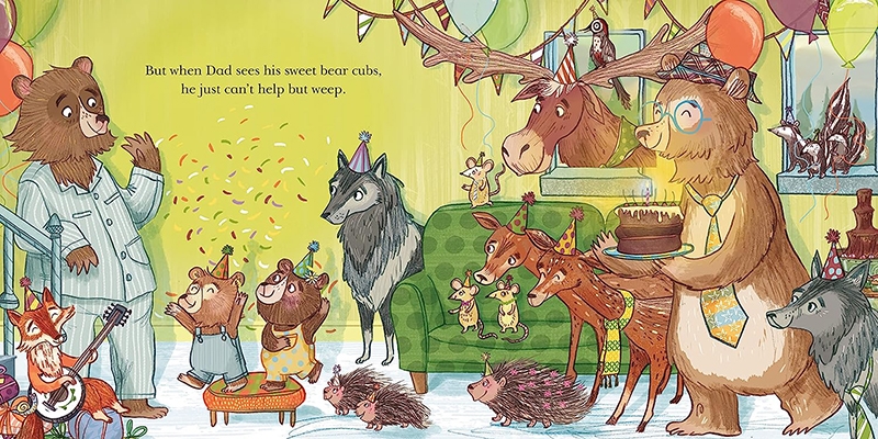 Bear cubs, Obi and Nadia, are throwing a surprise party for their sleepy (but amazing) dad. They've got balloons to blow up, cakes to make, and they've invited all of their woodland friends and family.