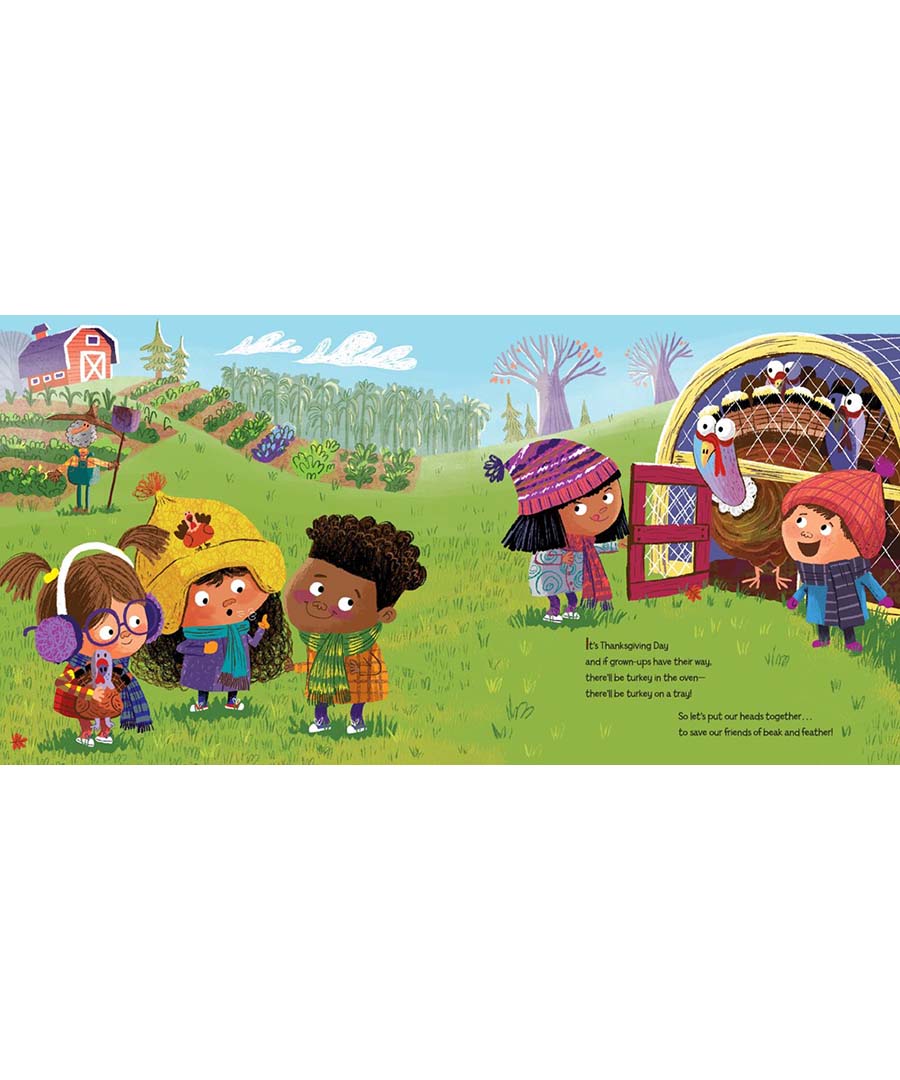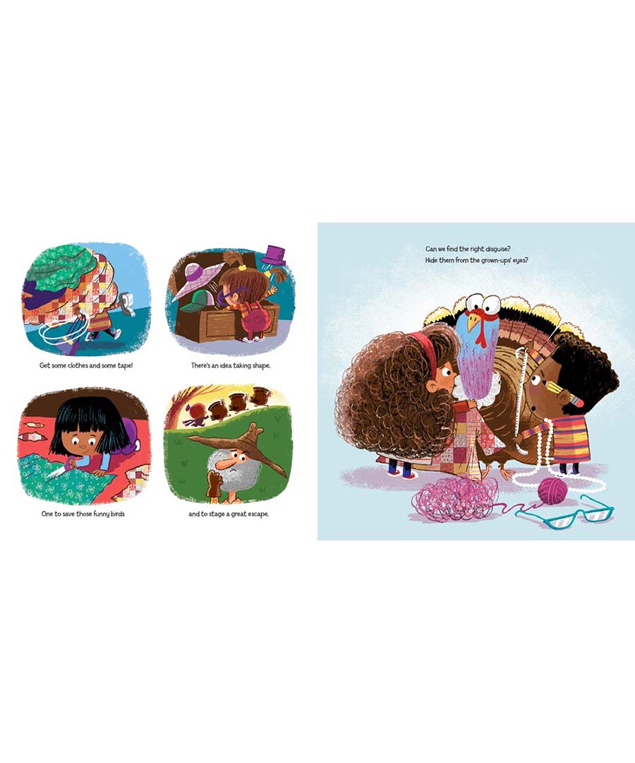 A hilariously fun read-aloud picture book where children think quickly and creatively to disguise a group of turkeys and save them from becoming Thanksgiving dinner!
