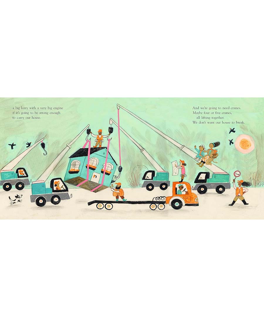 When a boy is told that they are moving house, he envisions his house lifted by cranes, winding its way through narrow streets, and even sailing across the sea… But his mother helps him understand: even if they must leave their house behind, the two of them will still be on an adventure.