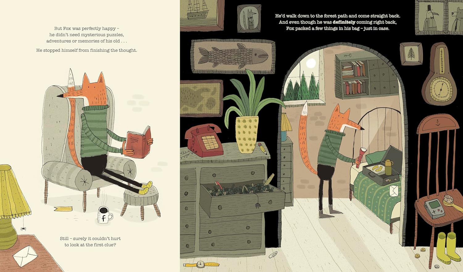 Fox doesn't need any mysterious puzzles, adventures or memories of his old— But he stops himself from finishing the thought. Still, it can't hurt to look at the first clue. Of course, one clue leads to the next: Fox follows arrows in the mud, notes taped to trees, swirling smoke signals, a map from a bottle and gifts from fellow animals – on the trail of a friendship that once was.