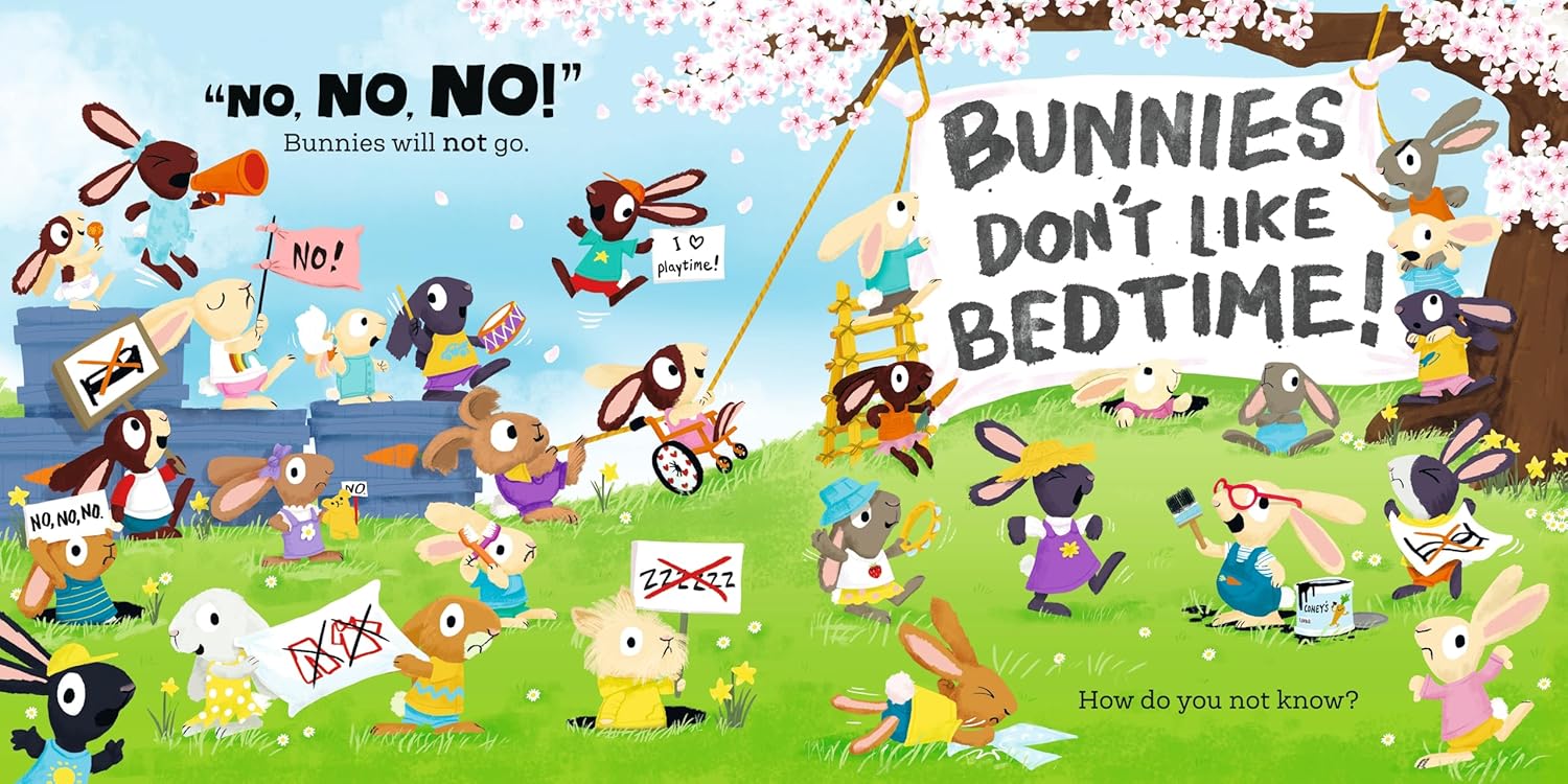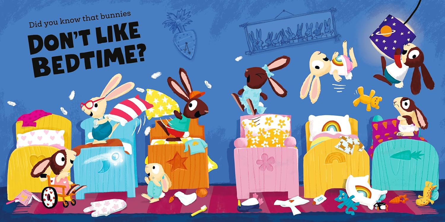 Bunnies really, really don’t like bedtime! Bunnies want to jump and leap, bunnies never want to sleep!