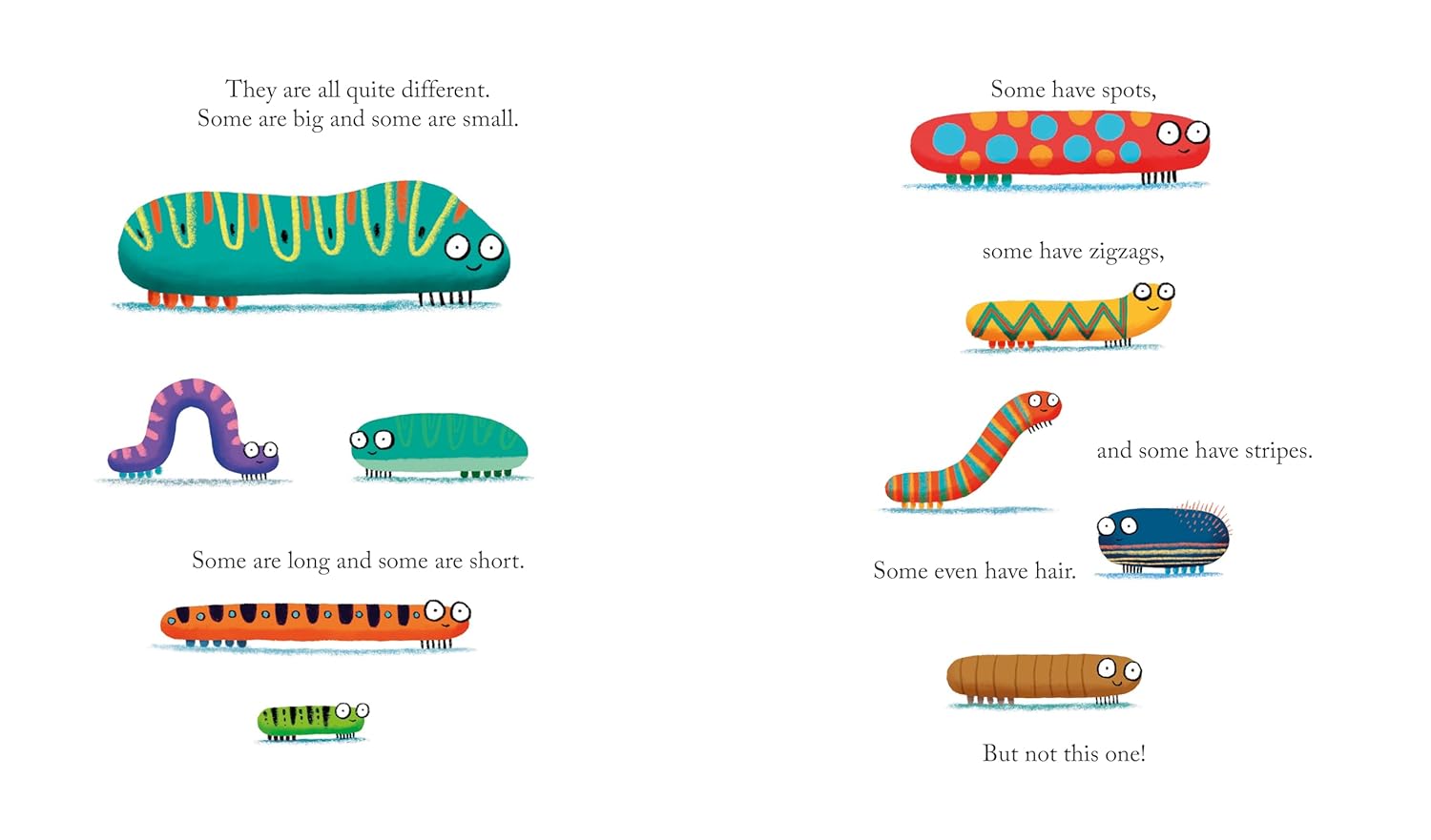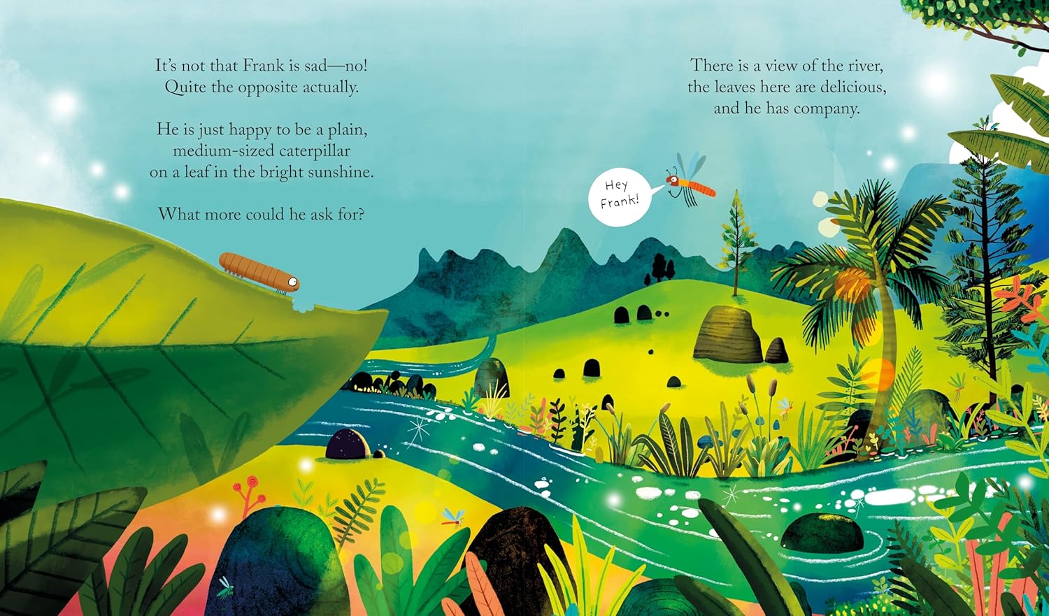 Frank is a very plain caterpillar, but he's fine with that. There's so much beauty to see all around him, and so many interesting insects to say good morning to. When the butterflies hatch, they are not happy. Not one of them looks quite as fabulous as they thought they would. Except for Frank . . .