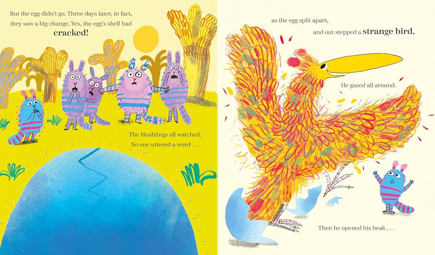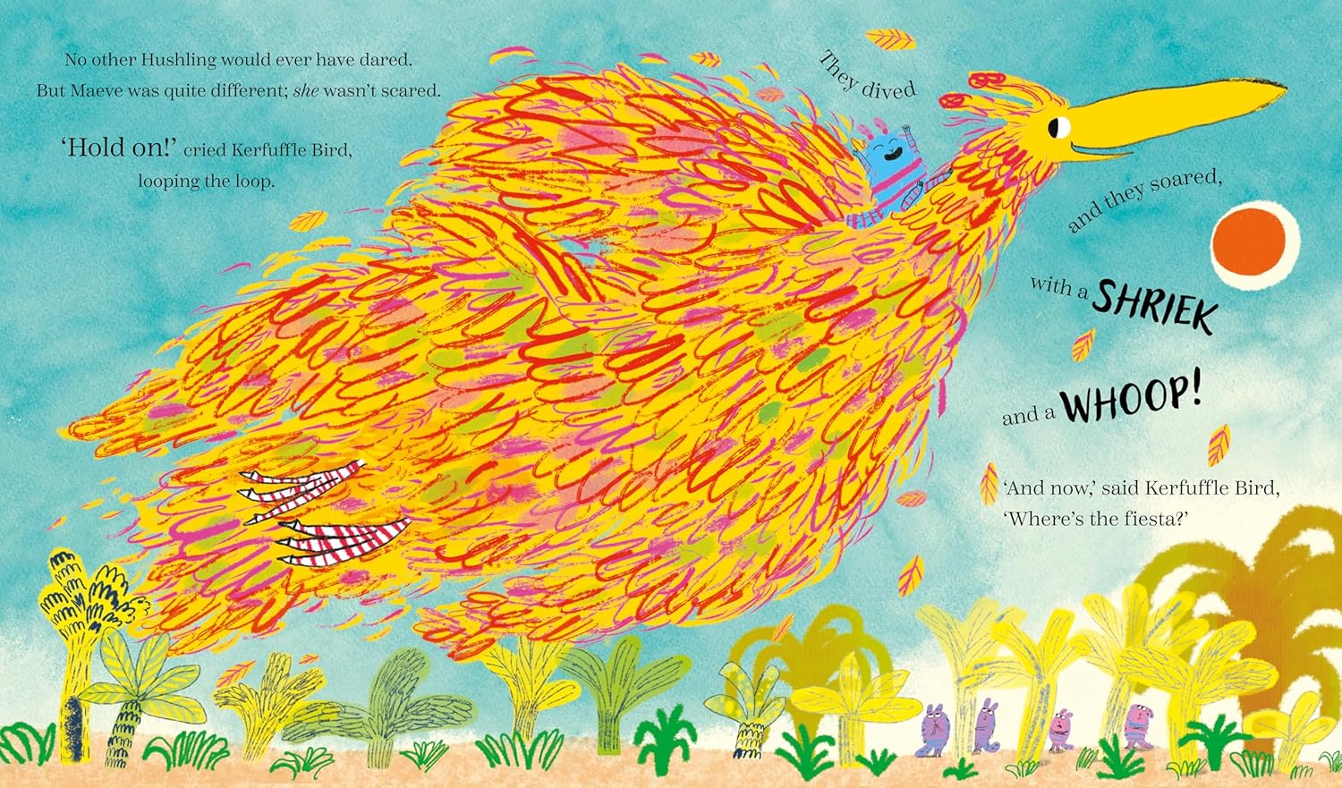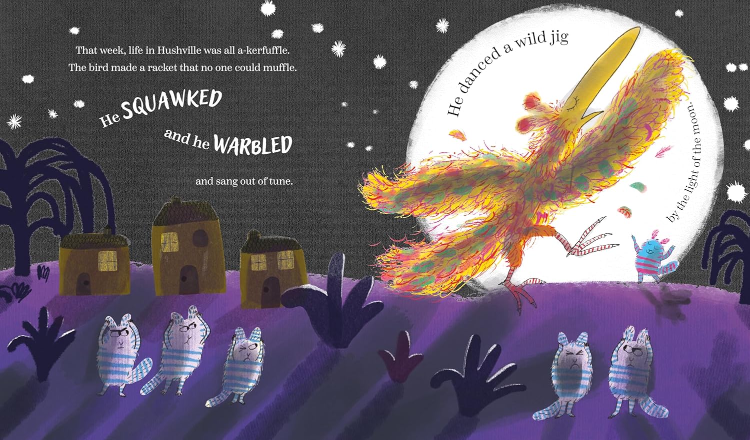 When the noisy Kerfuffle Bird arrives, Maeve is overjoyed to have someone to whoop and shriek with. But when Kerfuffle Bird's squawking and flapping, warbling and wild jigs become too much for the Hushlings, they discover the importance of expressing their feelings. Can they find a way for Maeve and Kerfuffle Bird to live in harmony with the community in Hushville?