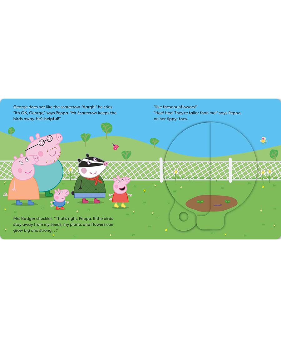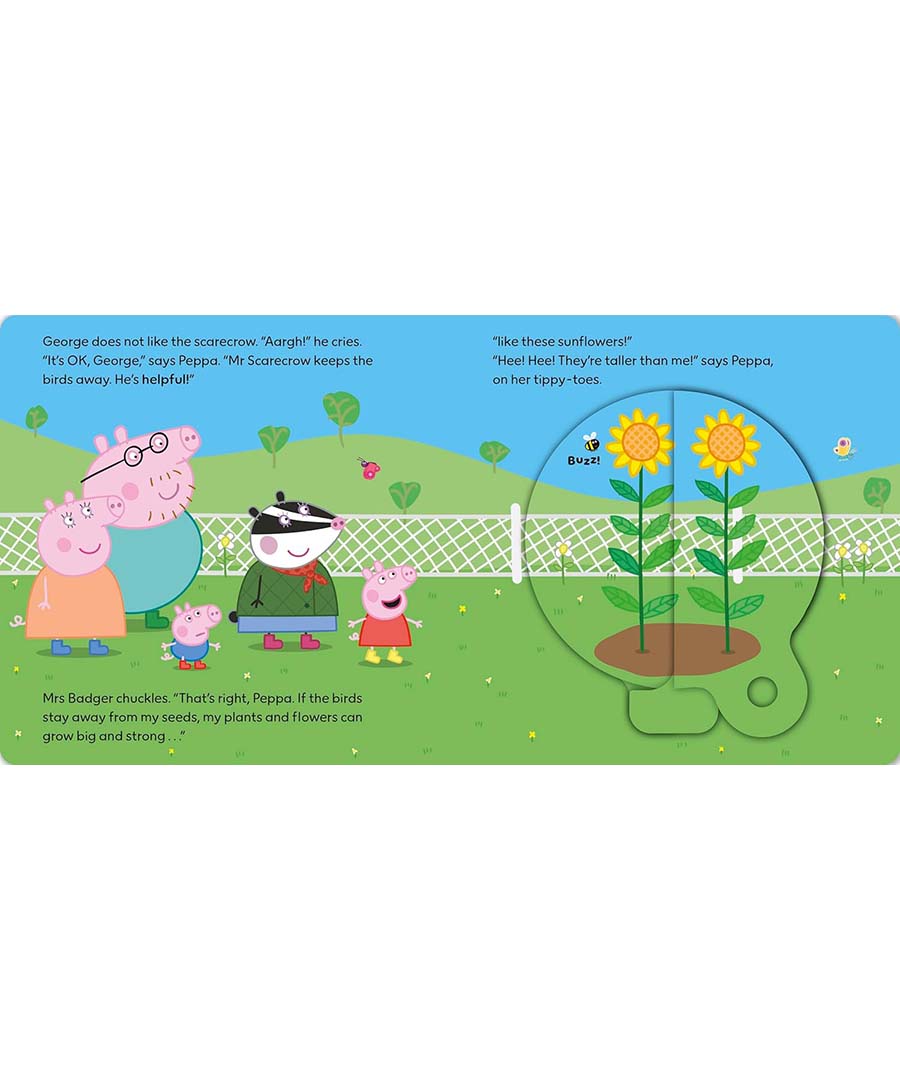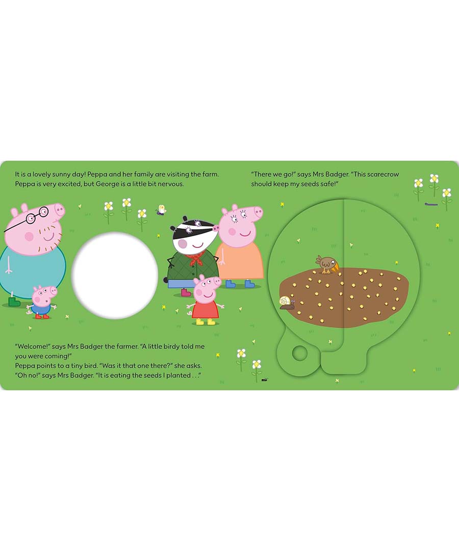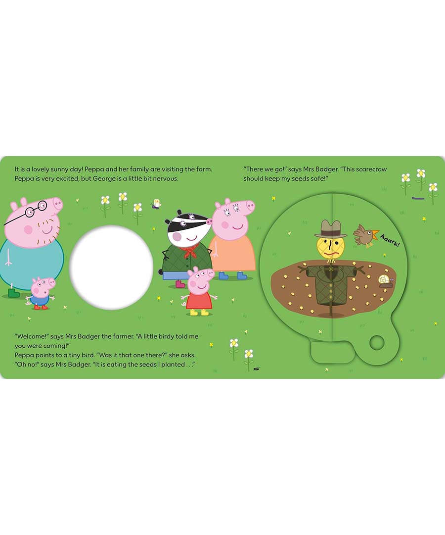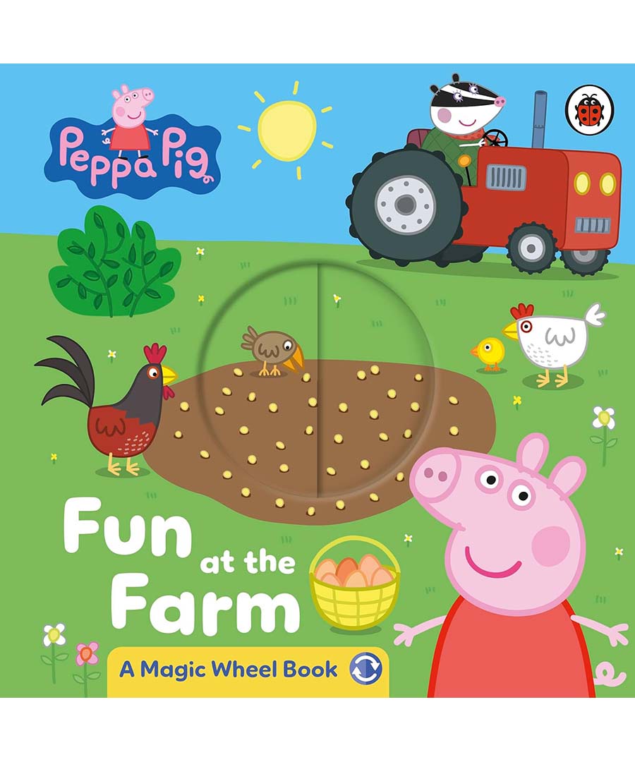 It’s Peppa’s birthday, and as a special treat she’s visiting the farm! She can’t wait to learn all about being a farmer. Read the story and turn the magic wheel to reveal a secret picture and join in the farmyard fun!