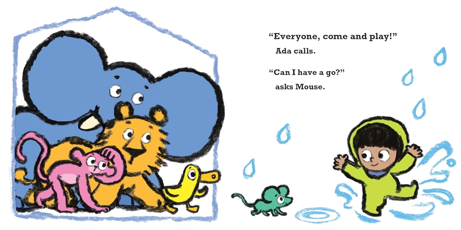 As every toddler knows, rain means puddles. And when Ada shares her best techniques with her animal friends, they all get more than they bargained for!