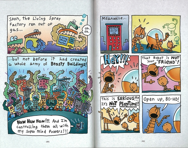 He was the best of dogs... He was the worst of dogs... It was the age of invention... It was the season of surprise... It was the eve of supa sadness... It was the dawn of hope... Dog Man hasn't always been a paws-itive addition to the police force. While he can muzzle miscreants, he tends to leave a slick of slobber in his wake! This time, Petey the Cat's dragged in a tiny bit of trouble -- a double in the form of a kitten clone. Dog Man will have to work twice as hard to bust these furballs and remain top dog!