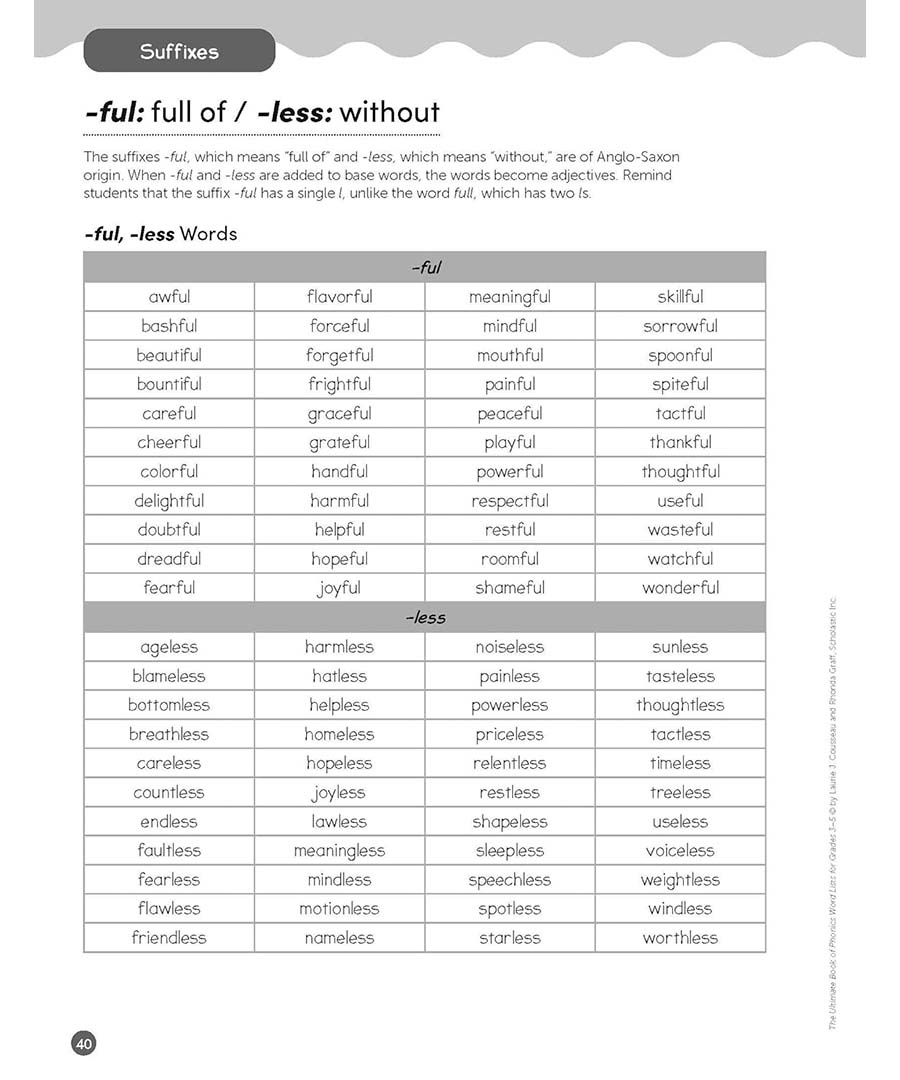 Phonics instruction in upper elementary means helping students decode multisyllabic words, learn common spelling patterns, determine word meaning from roots and affixes, develop vocabulary, and more. The lists in this book feature common syllables, prefixes and suffixes, Greek and Latin roots, parts of speech, and so much more. Reproducible games and activities can be customized for fun and engaging practice. Also includes assessments to gauge students’ spelling, vocabulary, and other skills.