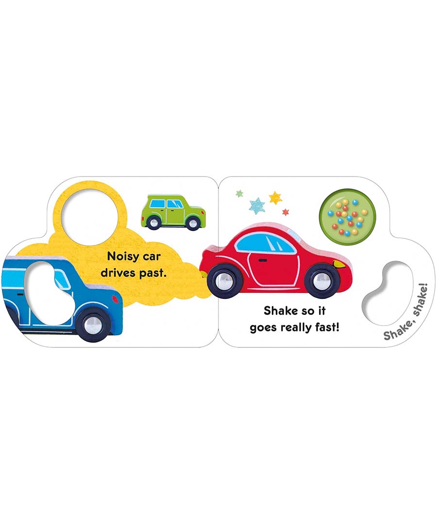 This exciting board book is the perfect size and shape for small hands to hold by its curved grip. There is a colorful, noisy rattle that features on every page and which baby can shake themselves. Discover different first words through funny rhymes and fascinating photographs, which will encourage word and picture recognition.
