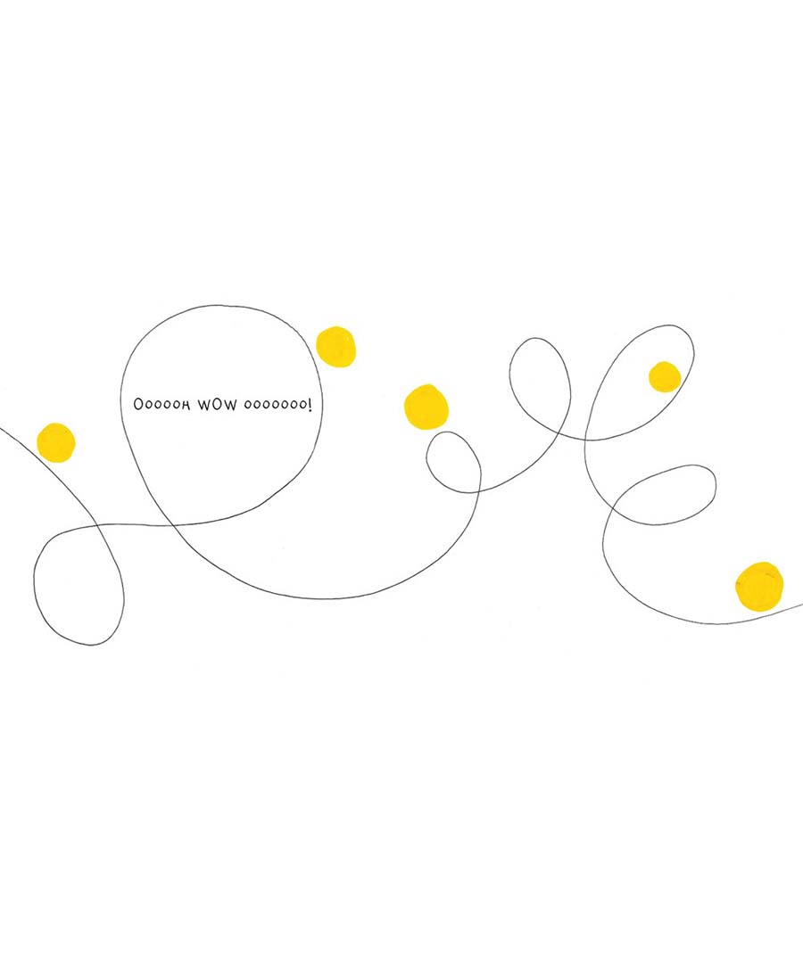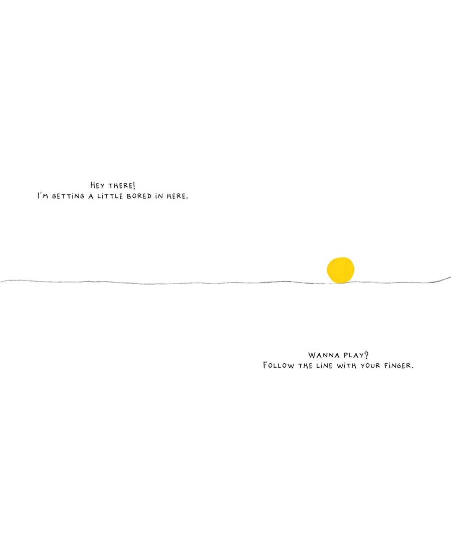 本書中出現一個 黃色點(yellow dot) 與一條細細的黑線,透過讀者的參與(例如在頁面上點、按、移動等)來展開一段冒險旅程。
