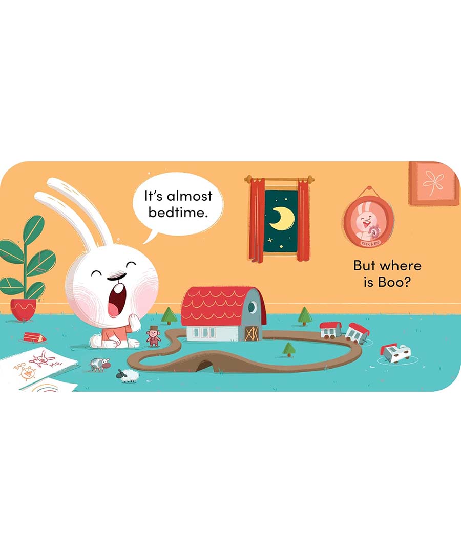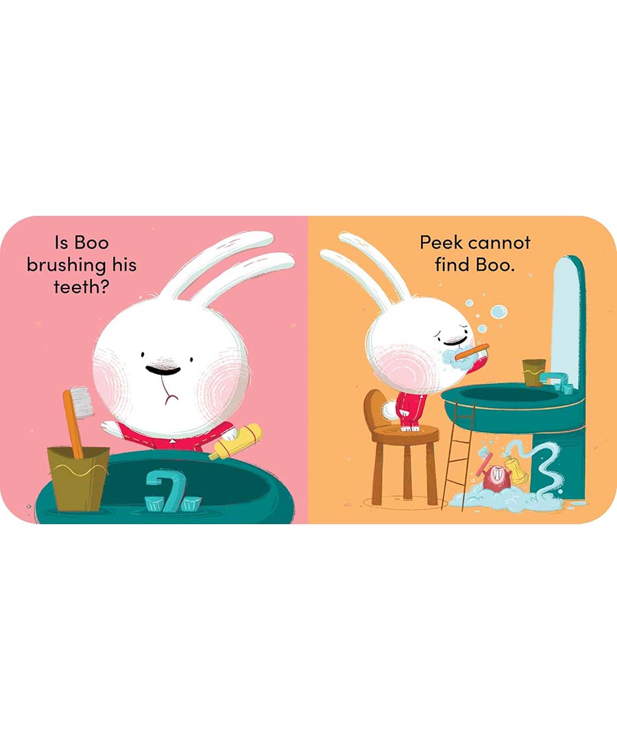 It's almost bedtime, but baby bunny Peek can't find her best friend Boo anywhere in the house. Is he hiding in the bath? Is he eating a snack? Can you help Peek find Boo in time for bed? Little ones will love exploring the house with Peek and searching for her guinea pig best friend on every page as Boo gets up to all sorts of hijinks before he makes a special appearance at the end!