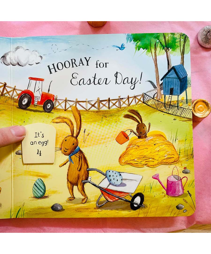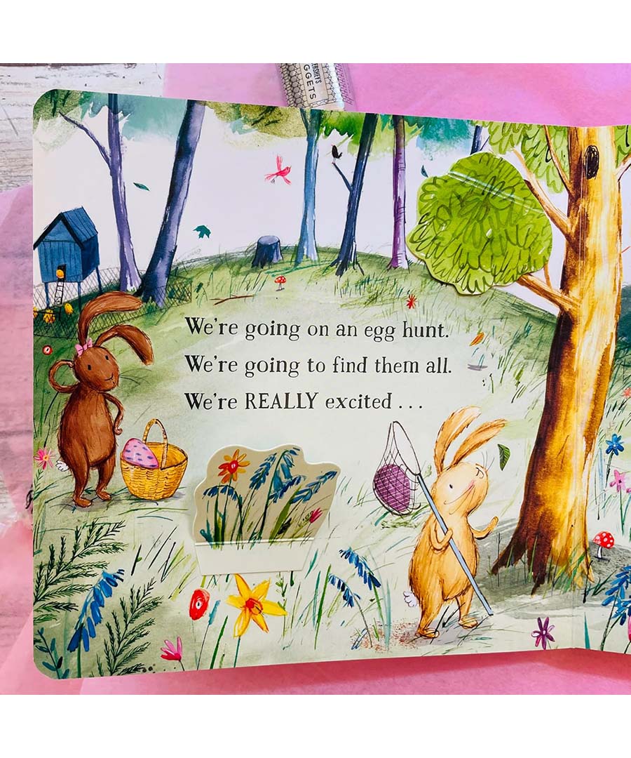 Join a family of bunnies as they set off on an exciting lift-the-flap Easter egg hunt. There are ten eggs to find and count--but watch out for the obstacles along the way . . . Lambs, chicks, bees, and ducks await, and there's even a wolfish surprise, so be careful!
