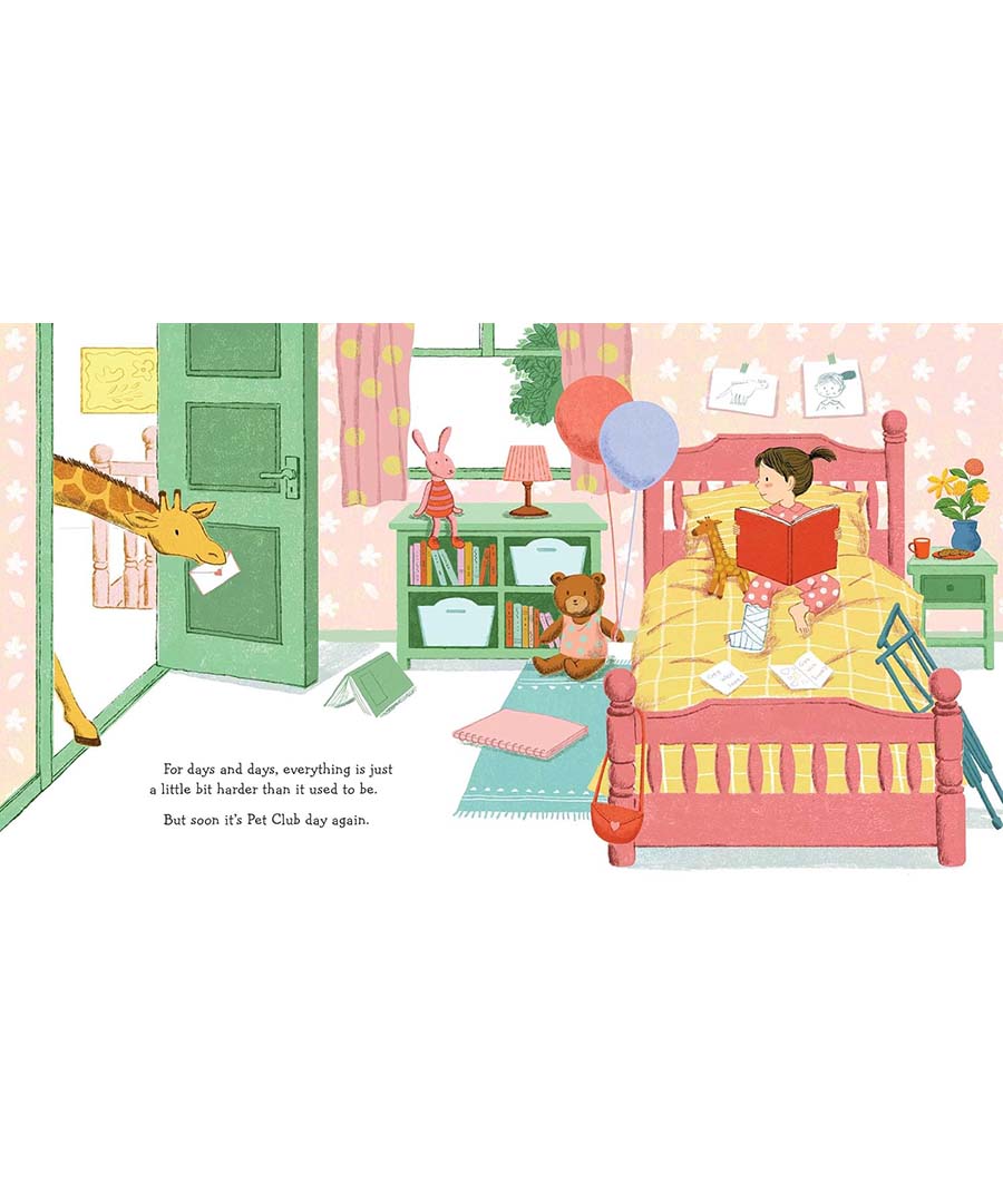 A girl knows having a pet giraffe poses some difficulties, like finding a way to take walks together with legs very different in length. And her giraffe doesn’t fit into the clubhouse door for Pet Club. But the Pet Club members come together to find a way for him—and everyone—to be included. Because that’s what friends do.