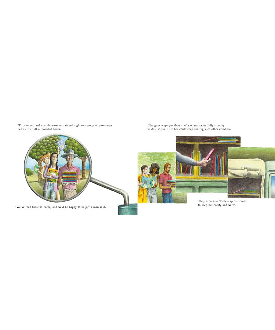 As time passes, things change on the farm, and life gets very quiet for Tilly. Missing the feeling of being useful and the sounds of stories being read, Tilly has an idea to share books with the community by becoming the Book Bus.