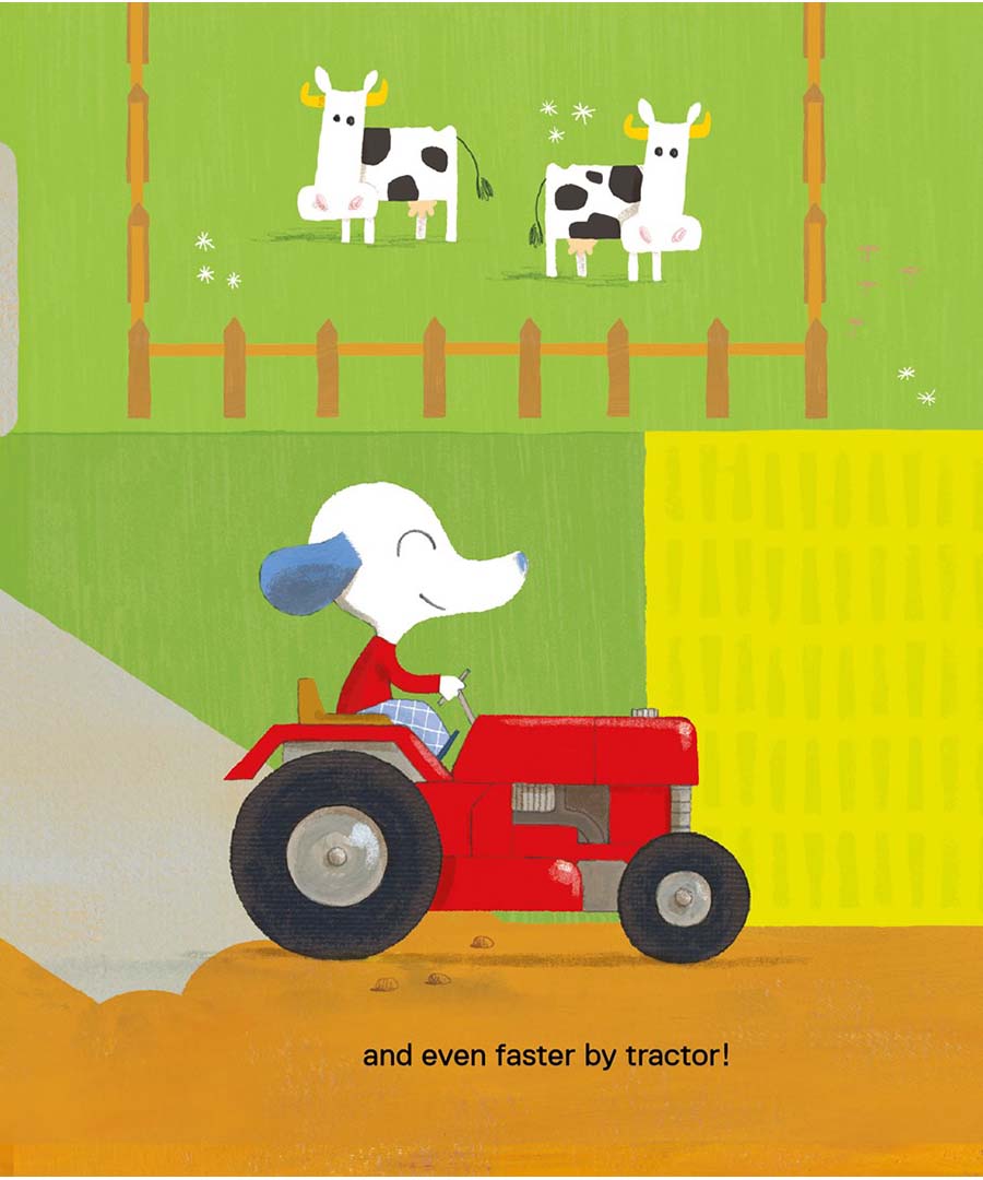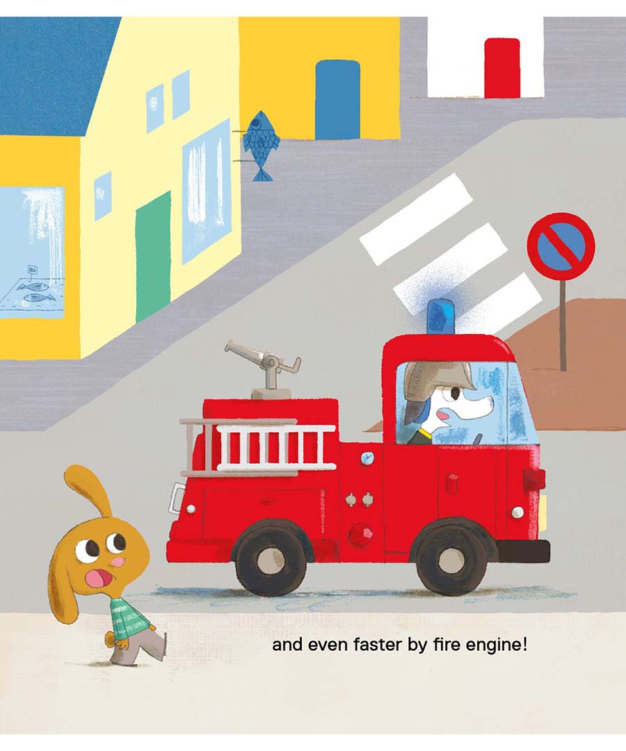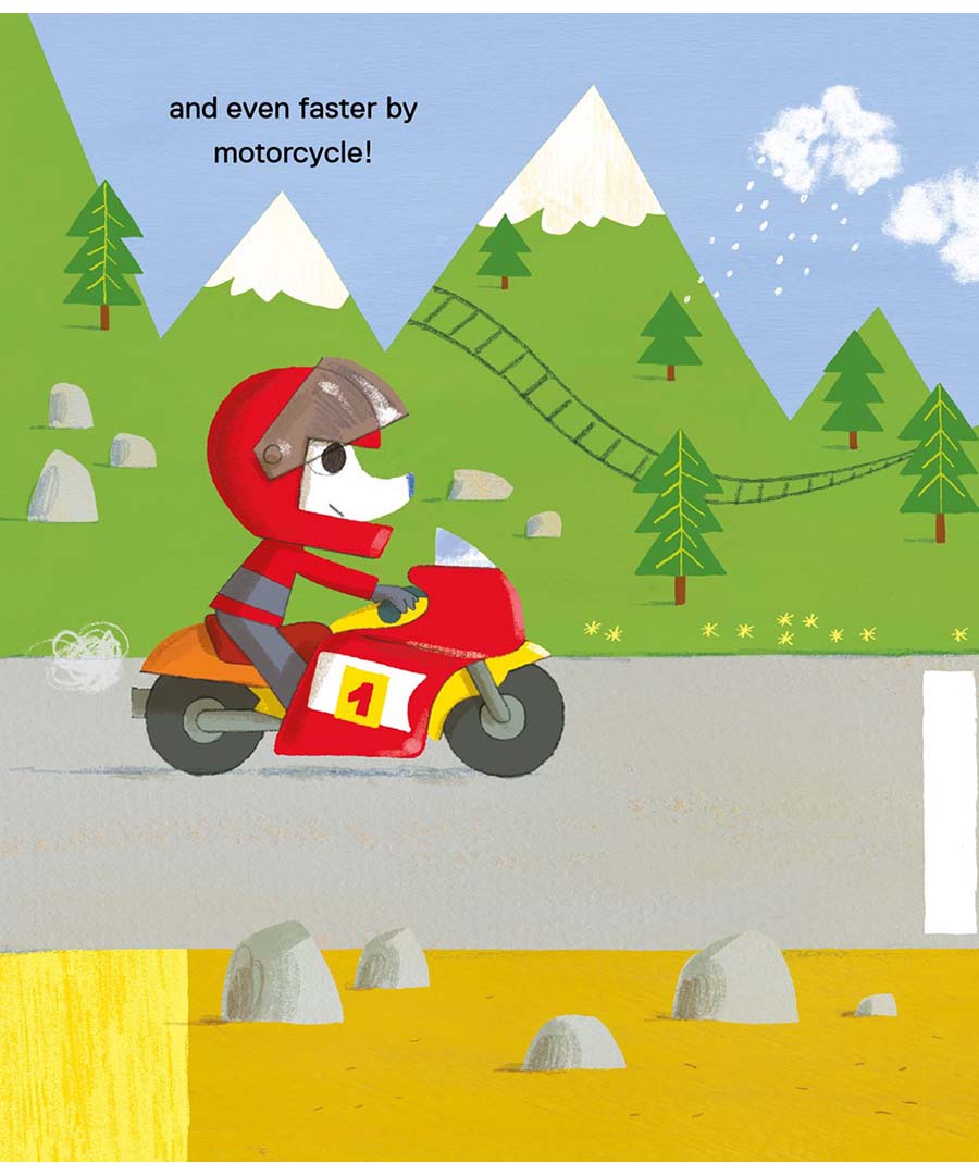 Faster by bike, boat, motorcycle! I will always go faster to find you so we have plenty of time to play! Children will learn to identify various vehicles as they race to meet their friend.