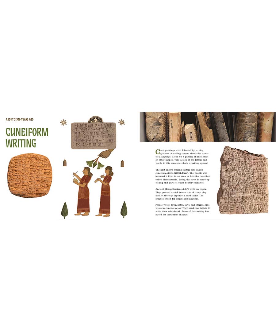 At one point, though, ideas needed to be remembered another way. Many people began to write down ideas. Writing could be saved and read for a long time. And as inventors created new technology, written words could be sent to people far away. The Story of Words: A Look at Writing Through History explores all the different ways ideas and traditions were documented, including:
