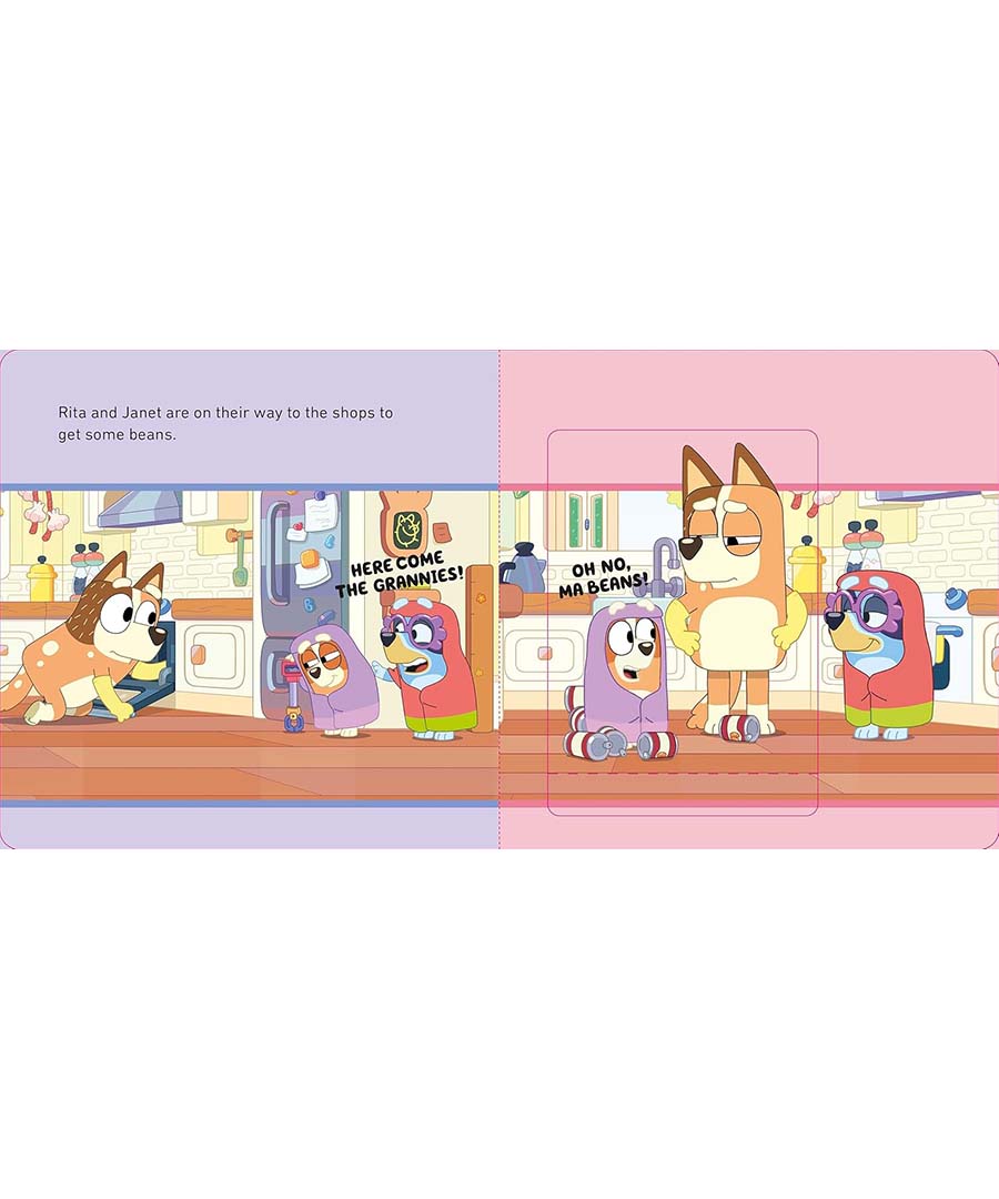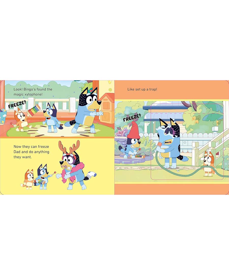Bluey and Bingo are having fun playing their favourite games. They freeze dad with their Magic Xylophone, turn the backyard into a zoo (watch out for the big blue daddy gorilla) and dress-up as Rita and Janet, the mischievous Grannies. Lift the flaps to play along and join in the fun!