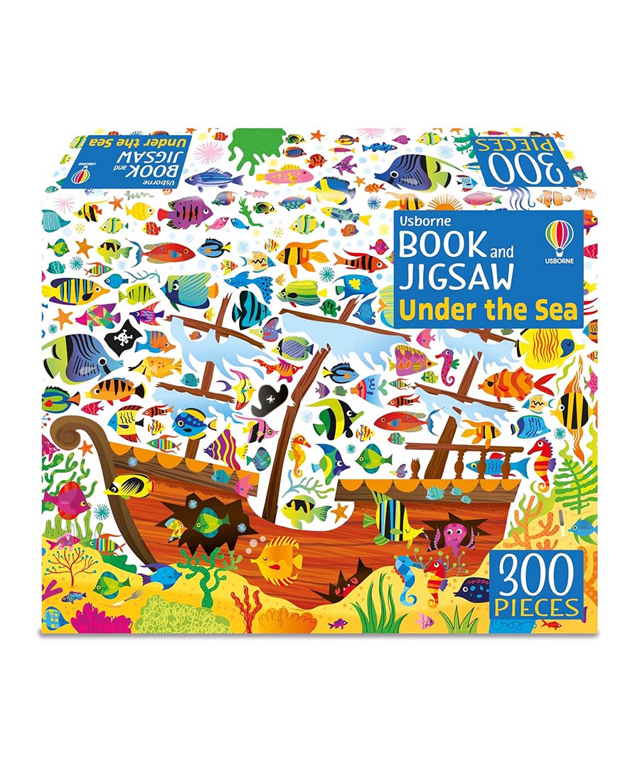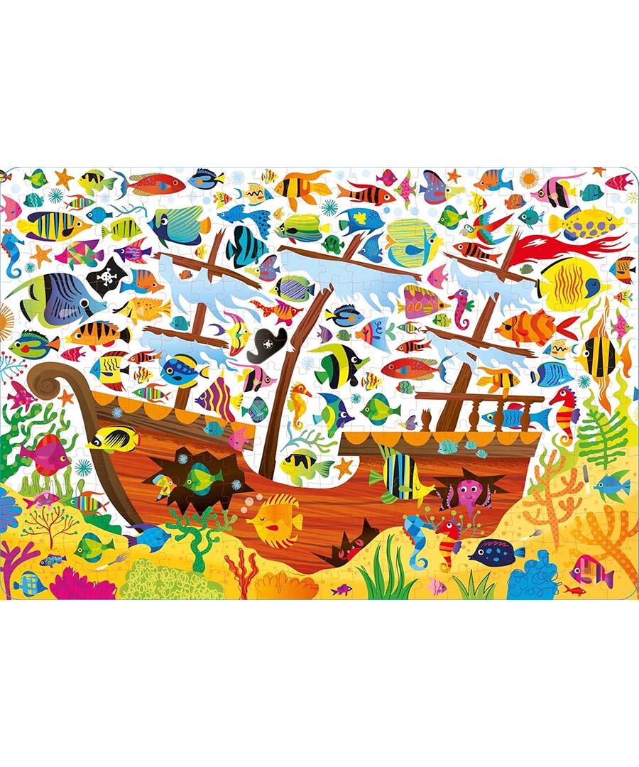 A fabulous 300-piece jigsaw teeming with colourful fish and a picture puzzle book, presented together in a beautiful sturdy box and both packed with things to spot and talk about. Can you spot a pirate's hat, the captain's spoon, a message in a bottle and lots more?