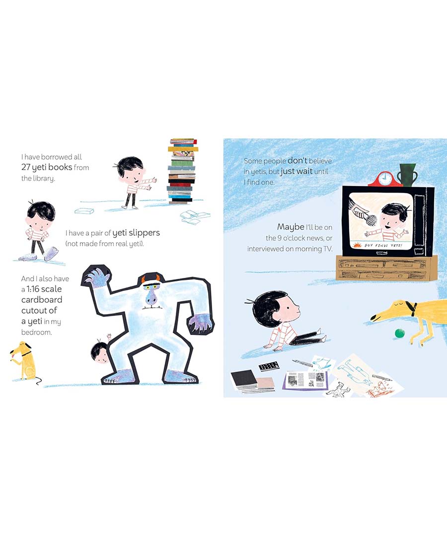 A little boy is certain that a yeti lives in the forest, and today he's determined to find it. With his dog, Milo, he searches here and there . . . high and low . . . until they are absolutely certain that there is NO YETI WHATSOEVER. After all, there's no such thing as a yeti . . . is there?