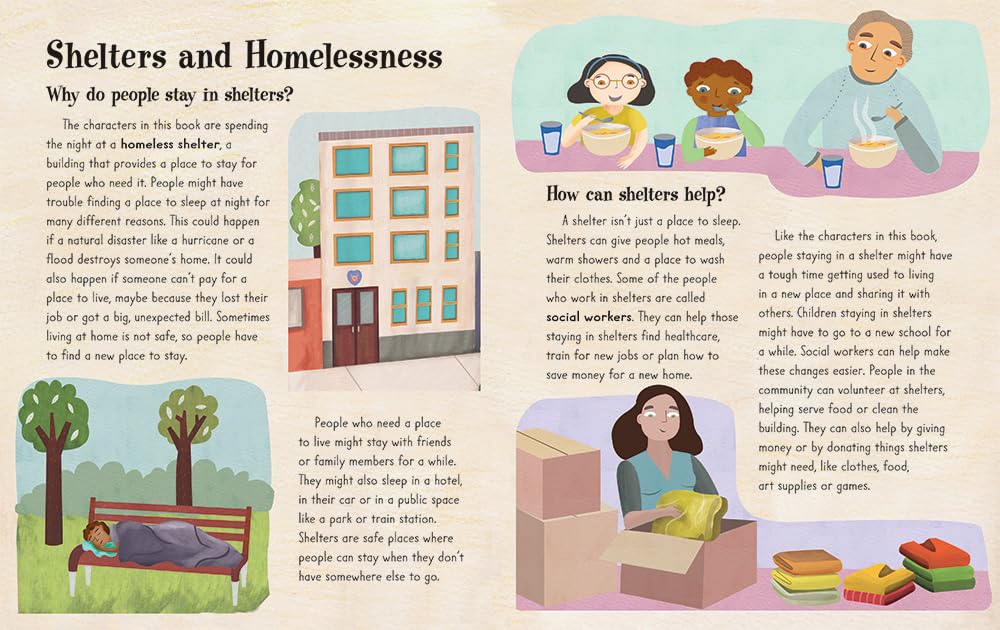 A young girl and her mom are facing a big change – they're staying at a women’s shelter for a little while, and the girl is feeling unsure about what comes next. But with her mother’s support and a little imagination, they transform their surroundings into something amazing: an unfamiliar bed becomes a rocket ship, and the dining room turns into a grand banquet hall! This heartwarming picture book gently introduces the concept of shelters, showing how imagination and love can make even the most unfamiliar places feel like home.