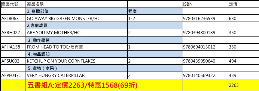 規格: 5書組A
