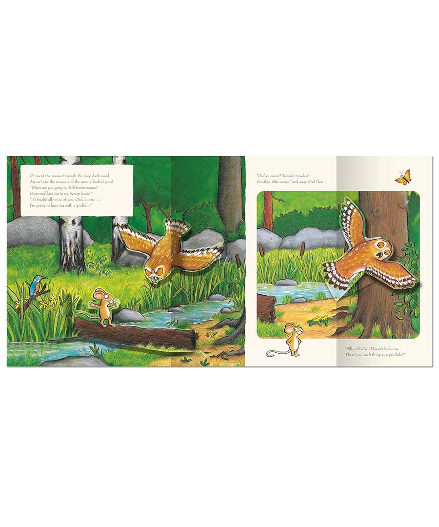 Read the classic story and discover what happens when a quick-witted mouse comes face to face with an owl, a snake . . . and a hungry gruffalo! The story is brought to life by incredible pop-up scenes and characters, including a huge 3D Gruffalo.