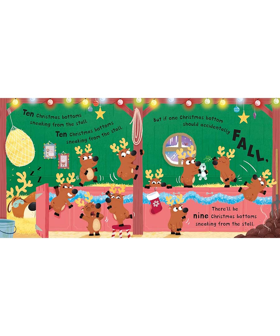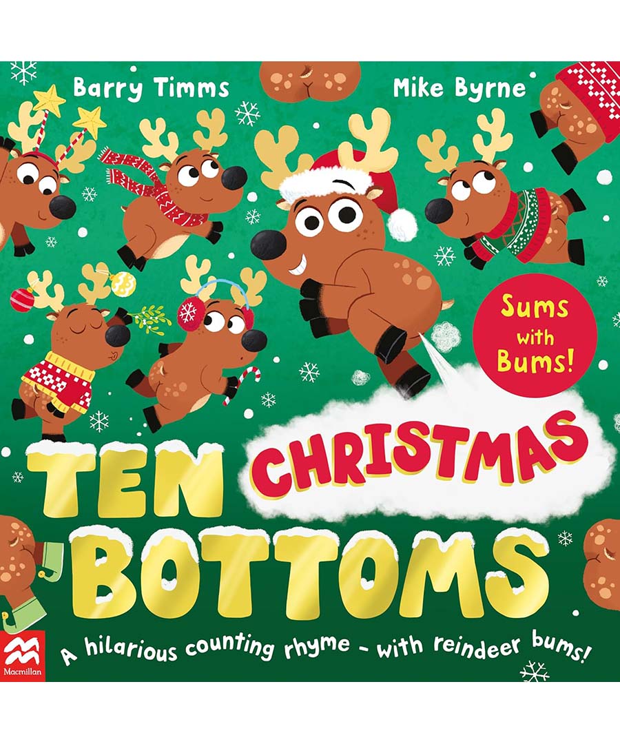 Count down from 10 with the cheeky little reindeer and do your 'sums with bums'! Ten Christmas Bottoms is a laugh-out-loud rhyming story for preschoolers – a festive twist on the nursery rhyme Ten Green Bottles.