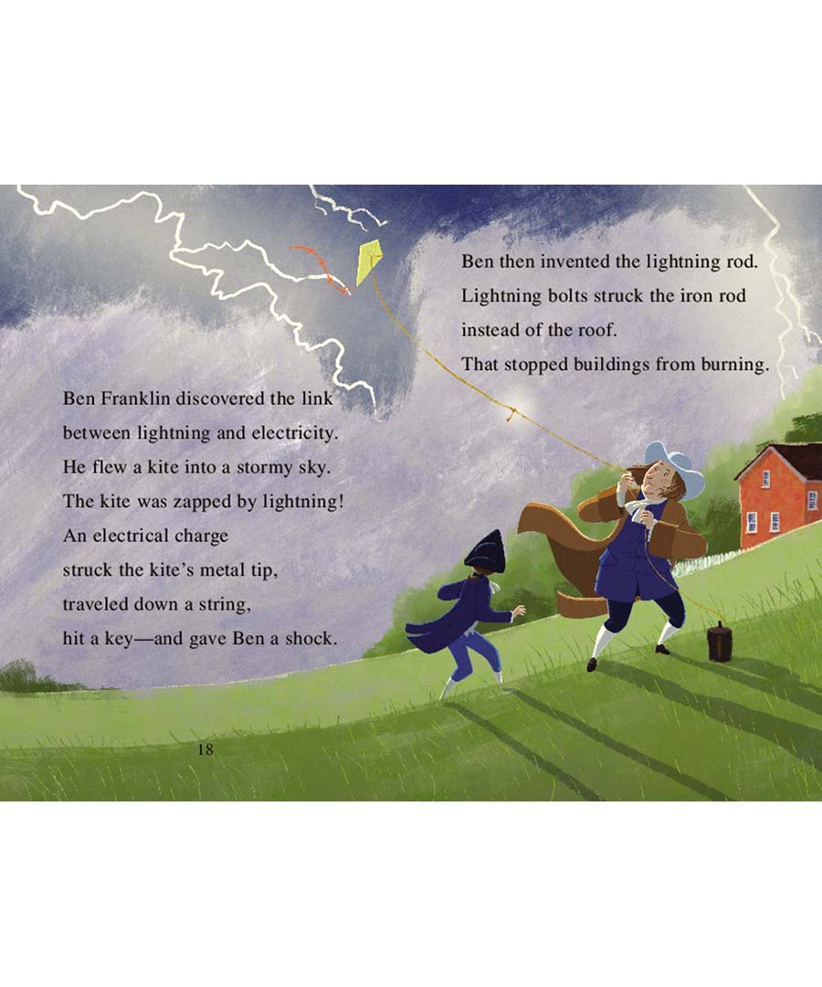Beginning readers will learn about the milestones in Ben Franklin’s life in this Level Two I Can Read biography. This biography includes bonus materials, complete with a timeline and historical illustrations, including Franklin’s electrical machine invention and his leaf print money that couldn’t be counterfeited.