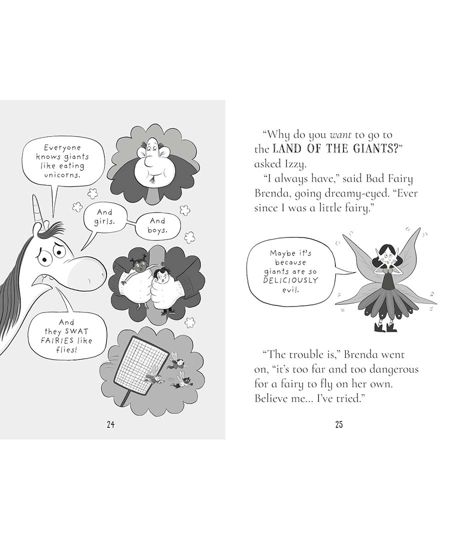 Izzy the Inventor has HAD ENOUGH. Bad Fairy Brenda has turned VERY BAD indeed, and Izzy wants to find a way to make her good. Unfortunately, this involves climbing up a beanstalk to the Land of the Giants, along with her sister and Henry the Unicorn. This journey will put Izzy's science skills to the test - she'll need catapults, light experiments and a pair of giant flying underpants...