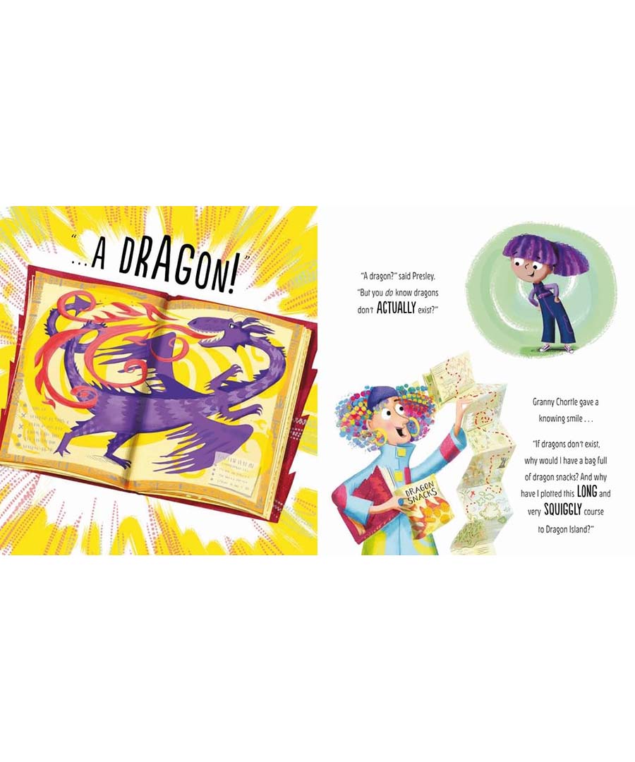 Then jump on board with the loveably wacky Granny Chortle as she whisks Presley, Piper and Precious away in her high-speed, turbo-charged helicopter to Dragon Island.