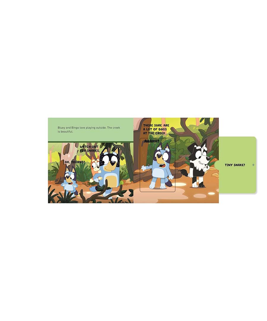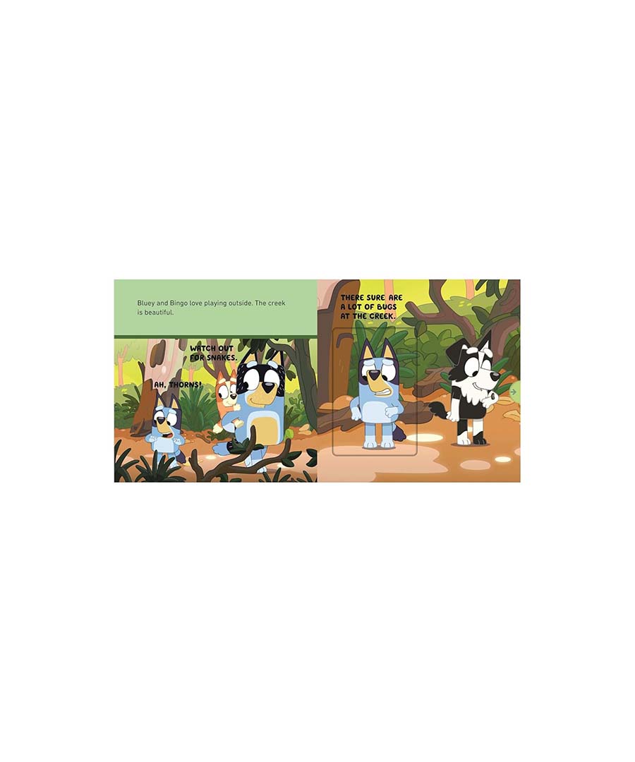 Join Bluey and Bingo in this push-and-pull book and help them find all the critters! From witchetty grubs to butterflies, this interactive format is perfect for little Bluey fans. Slide the scroll bar, pull the tab and spin the wheel to discover what bugs are hiding in this book!