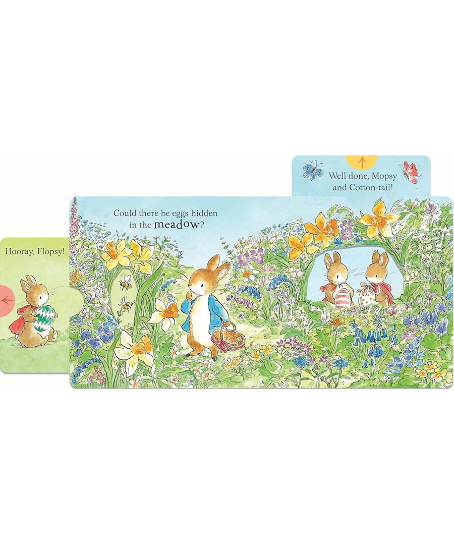 It's a beautiful spring day in the meadow, let the egg hunt begin! Help Peter Rabbit search for his Easter egg, and spot his friends along the way in this slide-and-seek adventure. With thick board tabs on every page, great for little hands to push and pull, this is the perfect Easter story to enjoy with the youngest of Peter Rabbit fans.