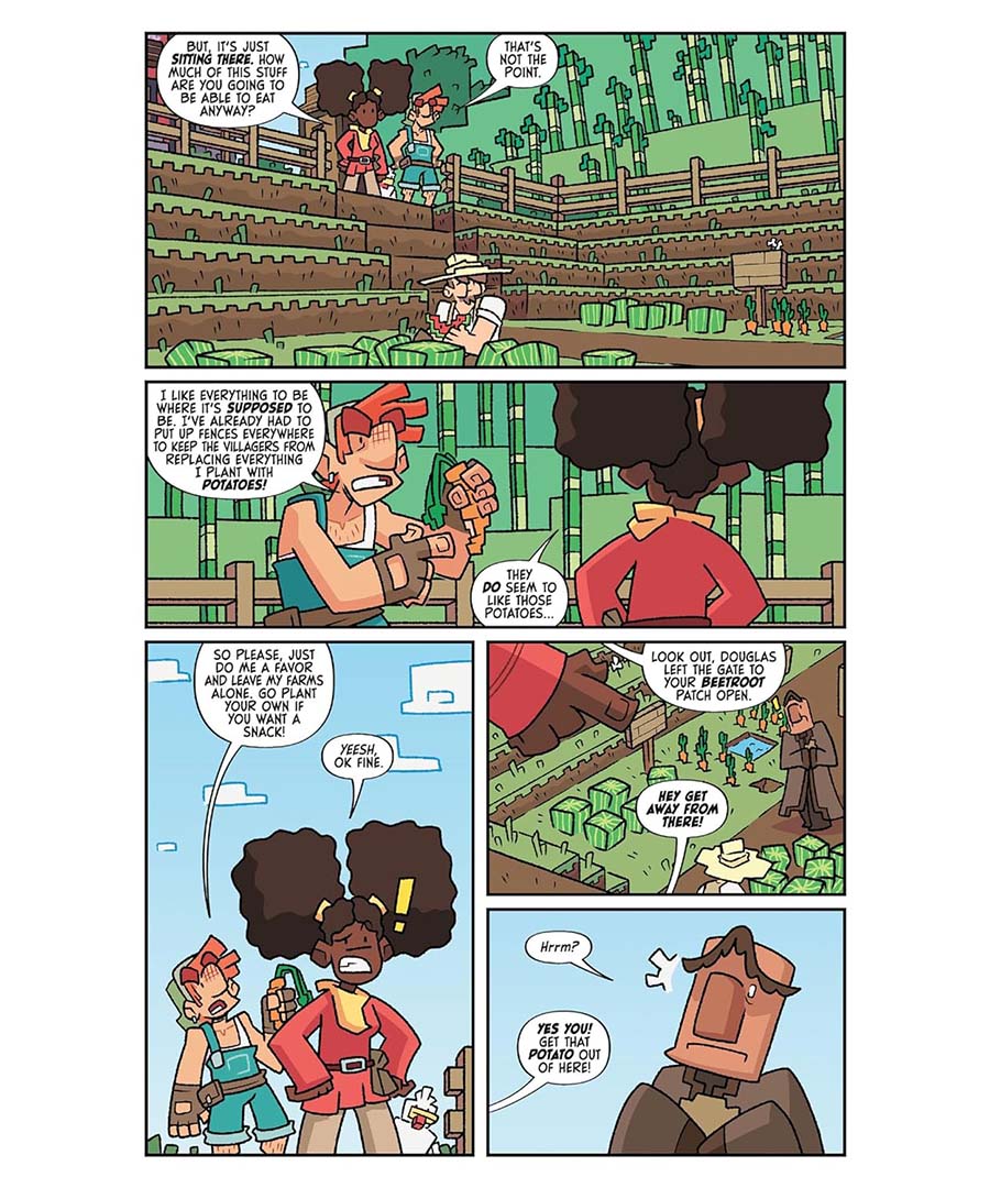 Farmer Cobb likes to keep his crops as neat as possible, which is frustrating when he has neighbors who like to chow down on his fresh produce without asking and villagers who can’t stop themselves from planting potatoes in his field without rhyme or reason. After a rough encounter with an Enderman he finally decides to get as far away from everyone and everything as he can . . . building a tower up into the sky!
