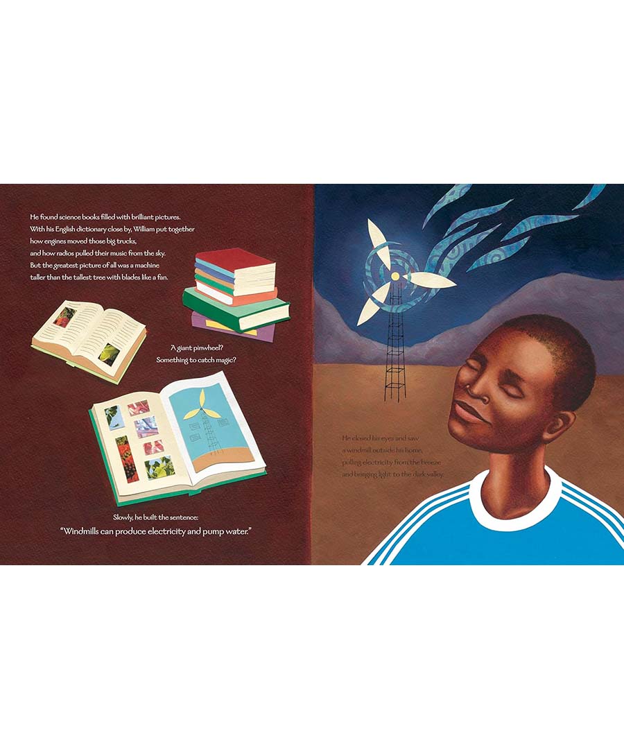 When a terrible drought struck William Kamkwamba's tiny village in Malawi, his family lost all of the season's crops, leaving them with nothing to eat and nothing to sell. William began to explore science books in his village library, looking for a solution. There, he came up with the idea that would change his family's life forever: he could build a windmill. Made out of scrap metal and old bicycle parts, William's windmill brought electricity to his home and helped his family pump the water they needed to farm the land.