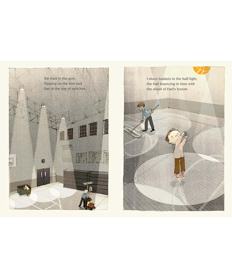 When the sun sets, Dad’s job as a school custodian is just beginning. What is it like to work on a Friday night while the rest of the city is asleep? There’s the smell of lilacs in the night air, the dusky highway in the moonlight, and glimpses of shy nighttime animals to make the dark magical. Shooting baskets in the half-lit gym, sweeping the stage with the game on the radio, and reading out loud to his father in the library all help the boy’s time pass quickly. But what makes the night really special is being with Dad. Newbery Medalist Karen Hesse’s quietly powerful story of a boy and his father is tenderly brought to life by G. Brian Karas in this luminous tribute to an enduring, everyday sort of love.