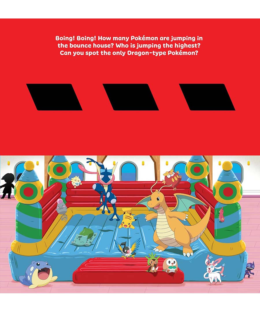 Pokémon: Let’s Cruise! is a unique interactive, accordion-fold board book, featuring die-cut windows to peek through and flaps to lift on every page.