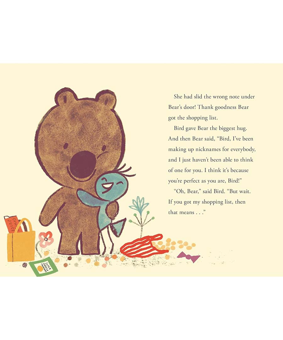 Best friends Bear and Bird may not always understand each other, but they always want the other to be happy. So when Bird feels left out because Bear has given a cute nickname to everyone but her, she’s relieved when her hasty list of names for Bear doesn’t reach him (Stinky Sock Muffin, anyone?). And when the two of them learn they have zero dislikes in common—from lasagna to chess to the word armadillo—and wonder if they can still be friends, they soon realize there’s one important dislike they can both agree on. Whether the challenge is being hopeless at keeping a secret (Bear), or getting befuddled about the rules for hide-and-seek (Bear again), this ever-endearing pair continue to charm in a sixth set of gentle