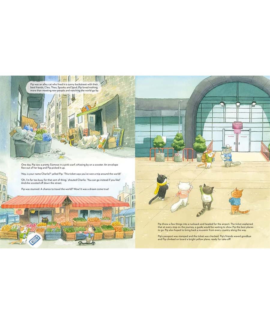 When an alley cat named Pip finds a ticket for a round-the-world trip that nobody wants, the scene is set for a globetrotting adventure.