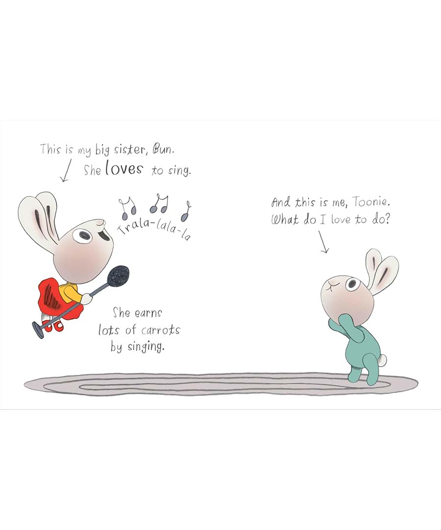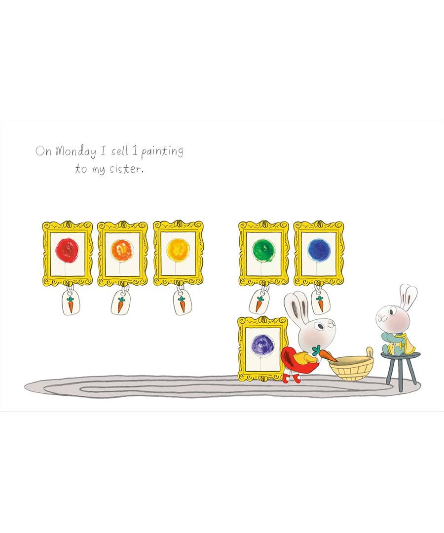 Carrots are money in Bunnyland, and Toonie really wants to earn some—but how? Well, he loves to paint—and everyone needs some nice artwork. So he takes out his easel, collects his supplies, and gets to work. Hippity hop, paint and don’t stop! Soon he has enough paintings to fill a whole gallery, and now all he needs are some customers. Good thing he has a big family and lots of friends! Little bunnies will get a kick out of watching this little go-getter rake in the carrots while doing something he loves!