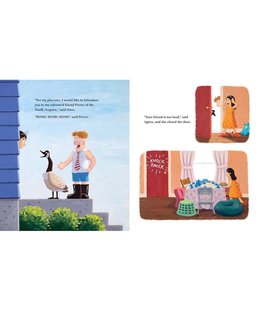 Agnes is sure that will be the end of that, but Dave is persistent, and before long he's bringing one friend after another as his plus one. Pierre of the North, Esquire, a goose who Agnes deems too loud; Fred, a cactus that's too prickly; Dr. Scalywiggles, a legless lizard she mistakes for a snake; even his mom, who makes great French toast and lets him win at tag. Alas, no grownups are allowed at this tea party.