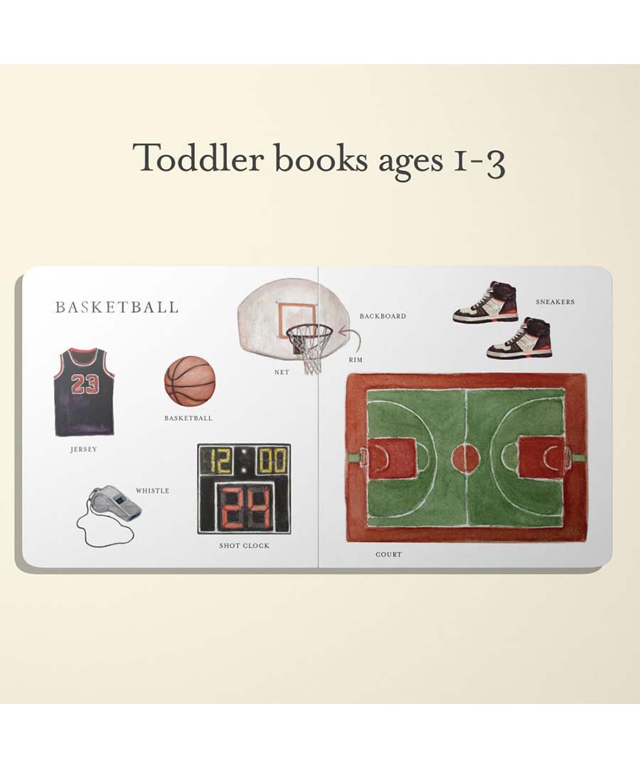 Designed by a professional watercolor artist and licensed speech therapist, Our Big Book of Sports includes charming watercolor illustrations and foundational words that will help you build your child's vocabulary. The durable materials and small book size also make them perfect for your baby's little hands.