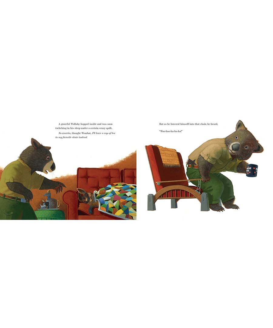 Then, one by one, five uniquely Australian animals - Wallaby, Kookaburra, Platypus, Koala, and Sugar Glider - seek refuge from the fires, and Wombat welcomes them all.