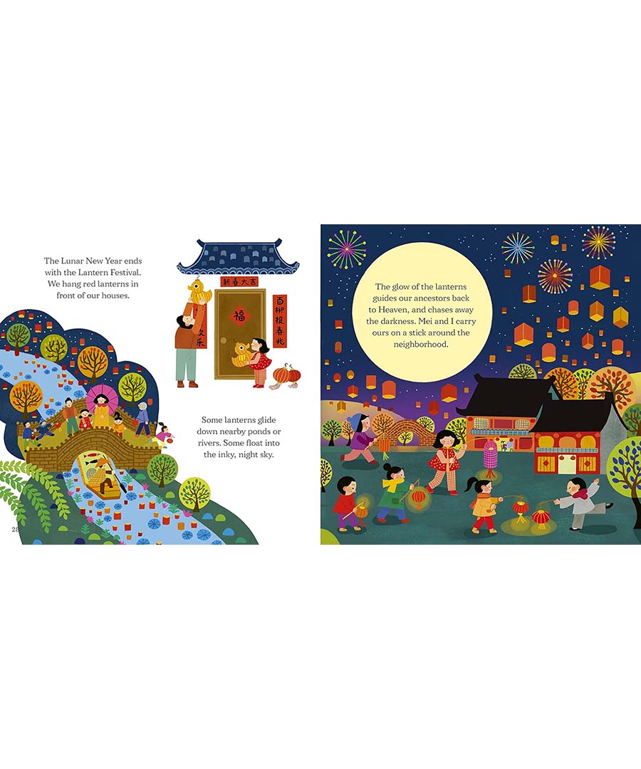 Lunar New Year captures the magic of the celebration by exploring how Ling and her family enjoy the biggest Chinese festival of the year . The new year festival lasts for 15 days full of preparation, celebration, and symbolism. Join Ling, her sister Mei and granny Poh Poh as they clean the house from top to bottom, pick fresh flowers from the garden, visit friends and family, and carry red lanterns through their neighborhood. Ling invites the reader into her home and family, allowing the reader to experience this special celebration first-hand through an authentic narrative non-fiction story .