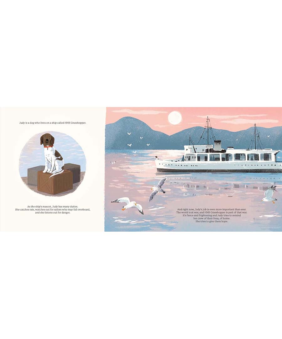 Judy is a dog who lives on a ship called HMS Grasshopper.