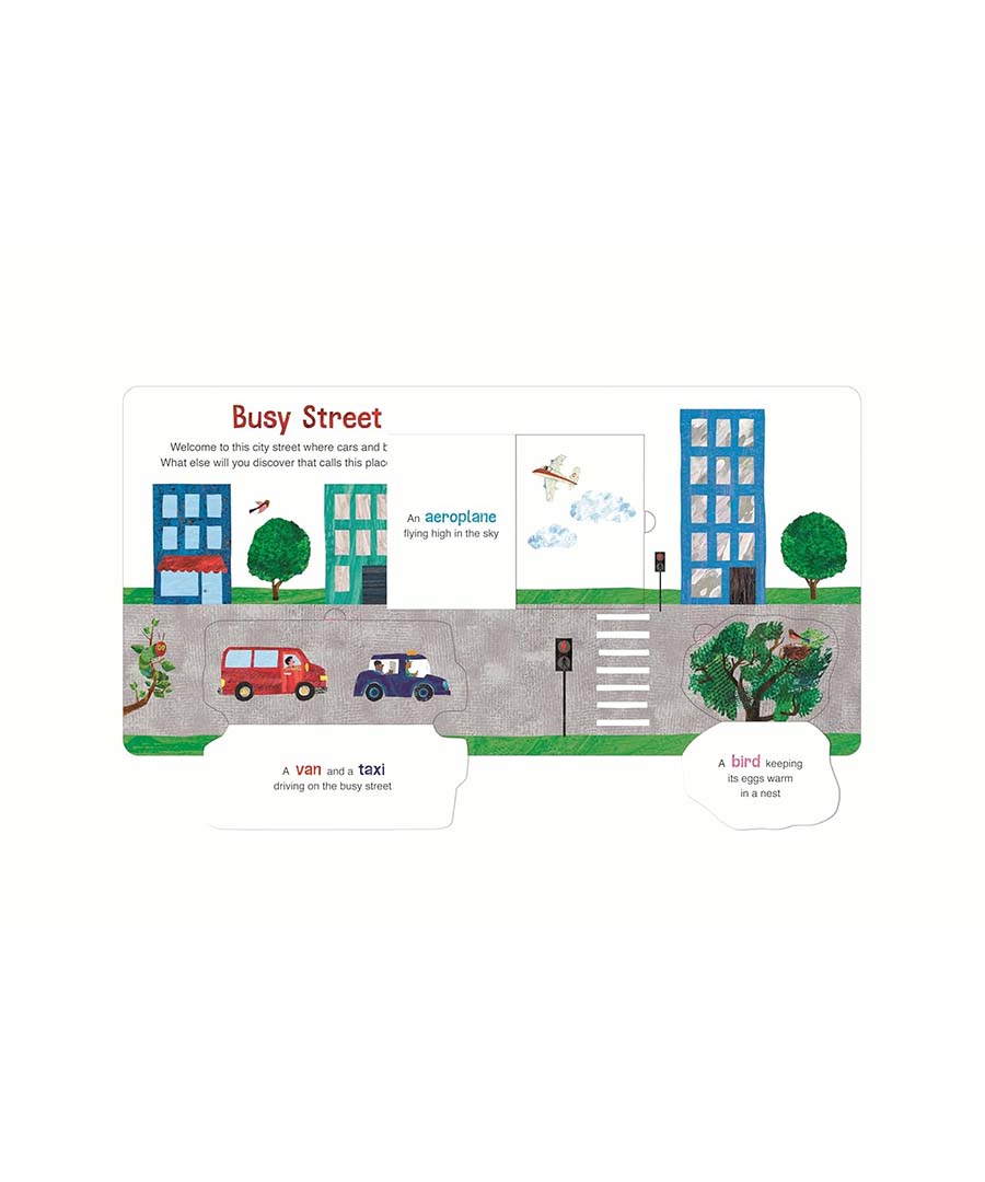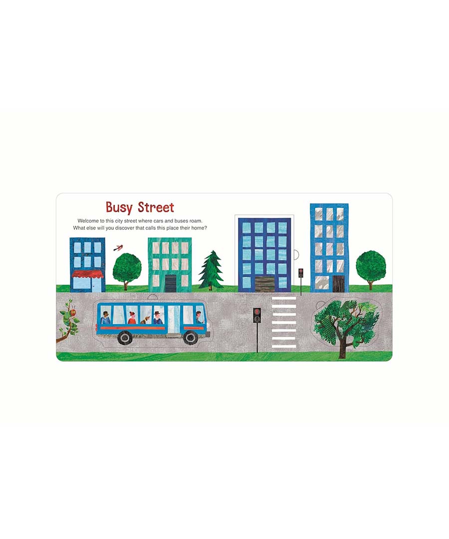 Join The Very Hungry Caterpillar in this interactive lift-and-learn board book filled with beautiful nature and city scenes to explore and hidden animals to discover.